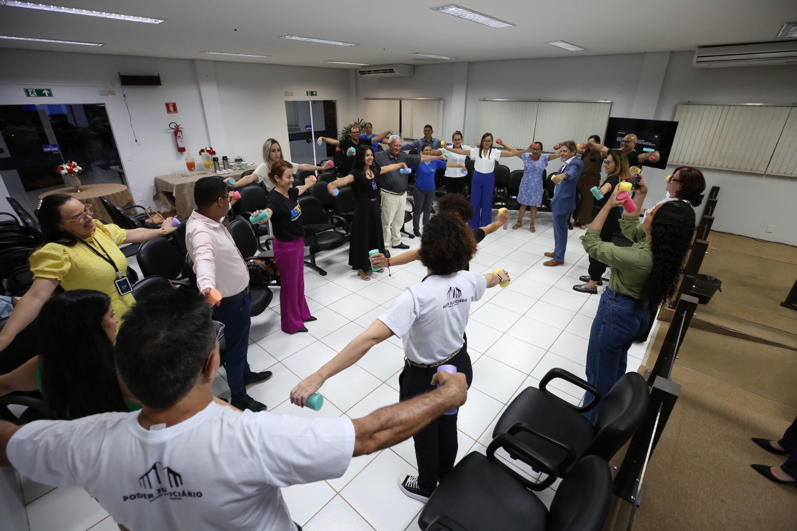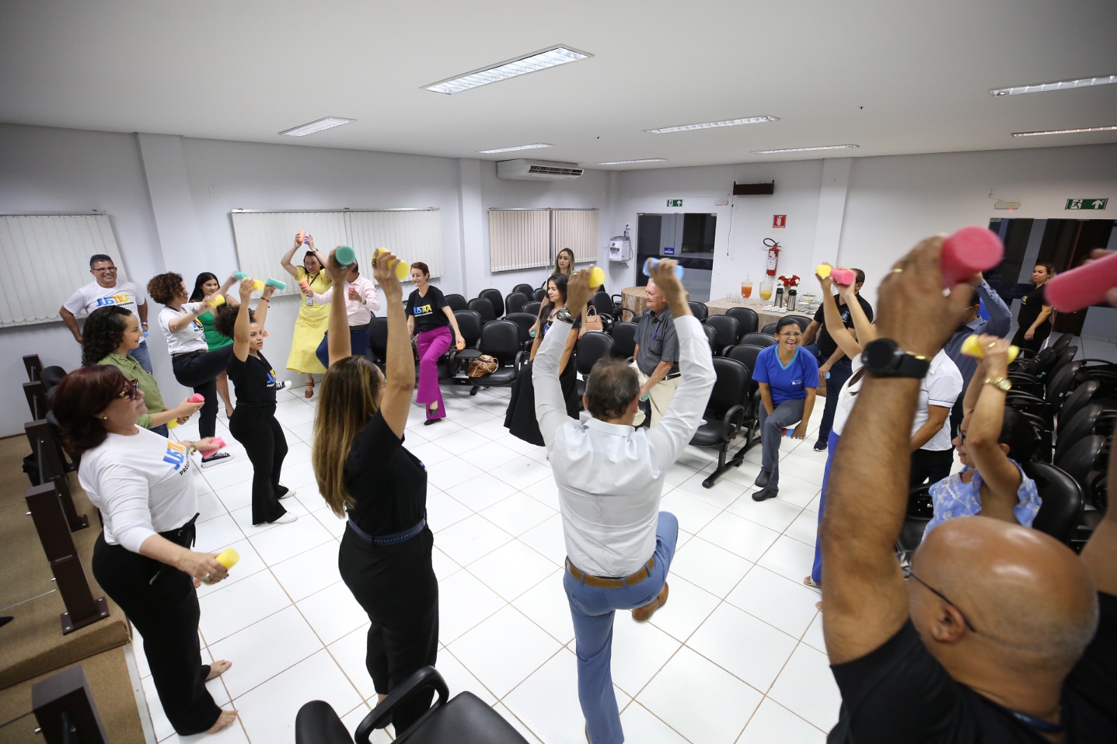 Segundo a diretora Márcia Mesquita, a partir de agora profissionais da saúde residentes nas Comarcas poderão prestar serviços in loco, com a abertura de editais de credenciamento pelo Grupo Gestor de Equipes Multidisciplinares (Ggem). Foi o caso da fisioterapeuta Larissa Silveira que, na parte final do encontro em Goiatins, ministrou uma sessão de alongamento e ginástica laboral acompanhada pela fisioterapeuta do Cesau, Hozana Lemos.
