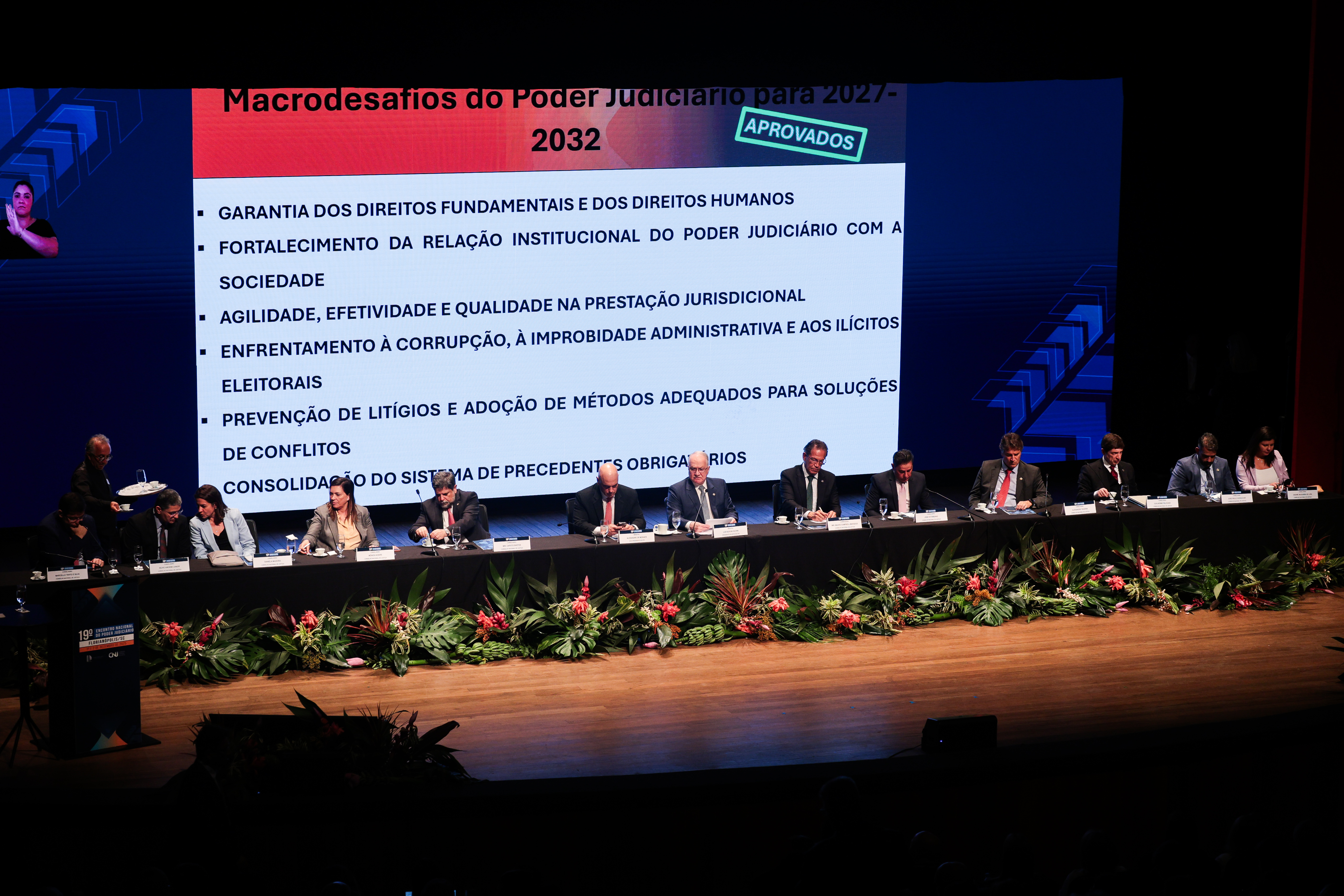 Um dos destaque do evento foi a apresentação das Metas Nacionais do Poder Judiciário para 2026 e dos macrodesafios que orientarão o planejamento de 2027 a 2032. As metas para o ano que vem incluem, entre outras, julgar mais processos que os distribuídos, priorizar ações antigas, estimular a conciliação e acelerar o julgamento de casos ambientais, de direitos indígenas e quilombolas, de racismo e injúria racial, além de processos relacionados à violência doméstica e aos direitos da criança e do adolescente.