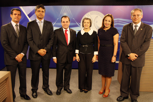 A presidente do Tribunal Superior Eleitoral (TSE), ministra Cármen Lúcia, esteve nesta sexta-feira, (22/3) em Palmas, onde visitou o titular do Colégio de Presidentes dos TREs (COPTREL) e do Tribunal Regional Eleitoral do Tocantins (TRE-TO), desembargador Marco Villas Boas. A ministra, que foi também recebida pela presidente do Tribunal de Justiça do Estado do Tocantins, desembargadora Ângela Prudente, teve a oportunidade de conhecer as dependências da ESMAT – Escola Superior da Magistratura Tocantinense, onde proferiu mensagem, ao vivo, para todos os juízes e servidores das 42 comarcas do Tocantins. Logo depois a ministra Cármen Lúcia, acompanhada do juiz auxiliar da Presidência do TSE, Paulo Tamburine; do Secretário-Geral da Presidência do TSE, juiz Carlos Braga; e da Assessora-Chefe da Assessoria de Imprensa do TSE, Christina Mendes; realizou palestra para os servidores da Corte, em evento no auditório do TRE-TO, abordando temas como o Recadastramento Biométrico no Tocantins, implantação do Processo Judicial Eletrônico (PJE) e  Eleições 2014.