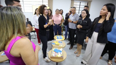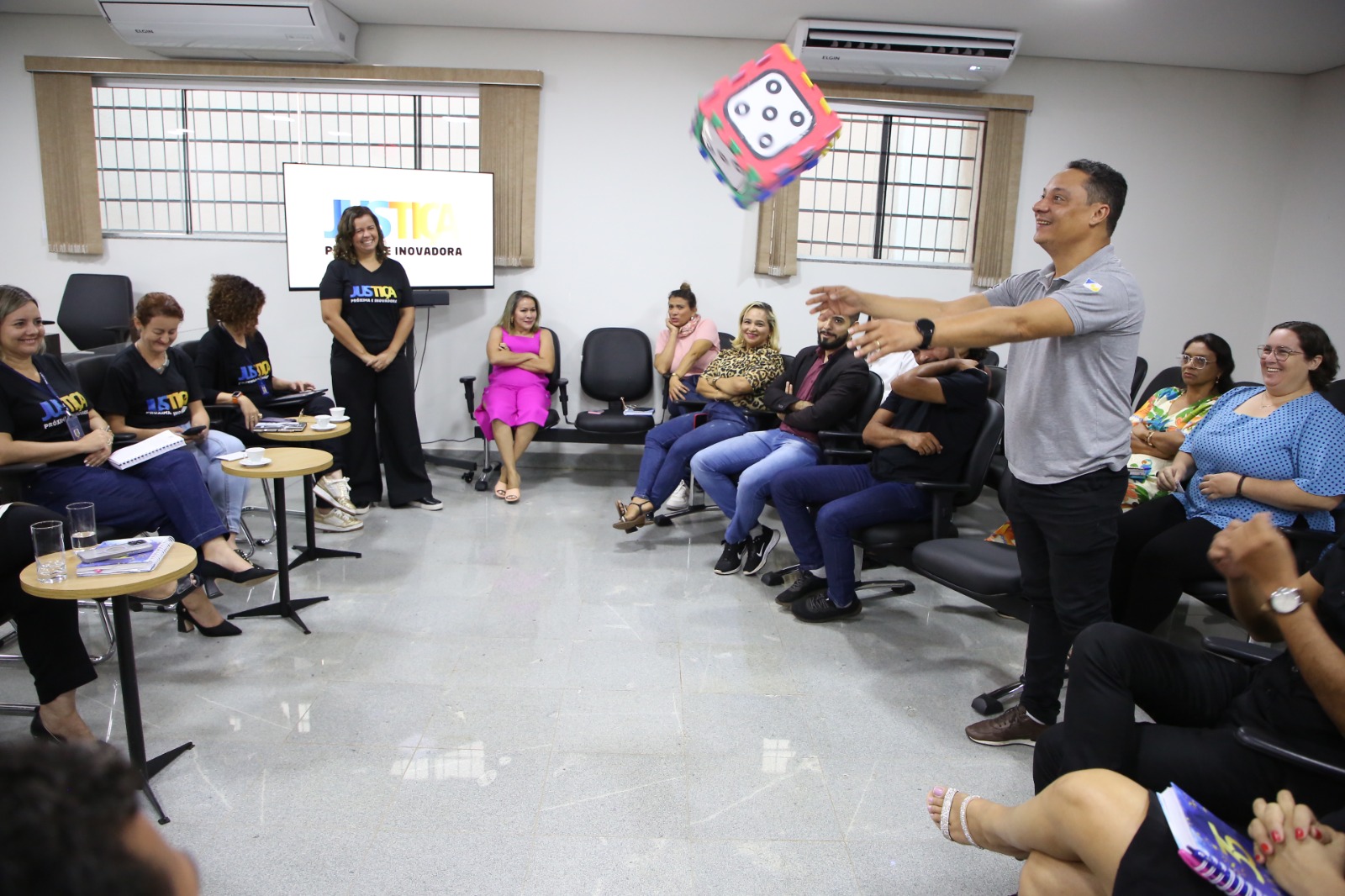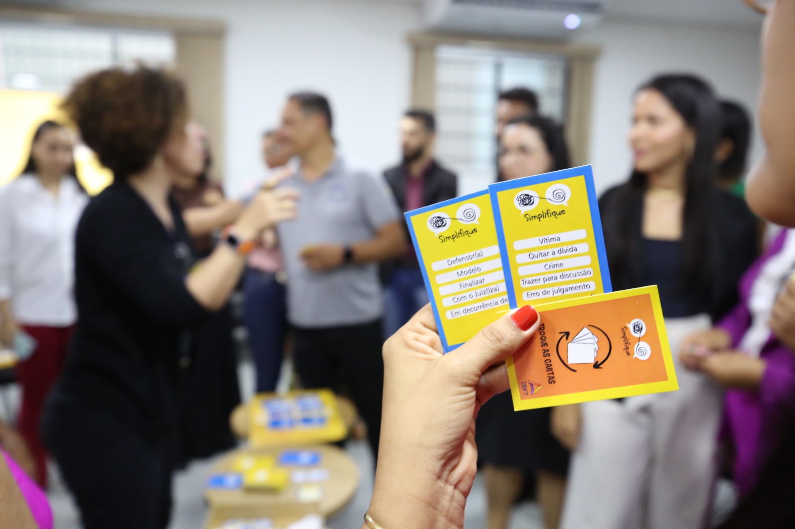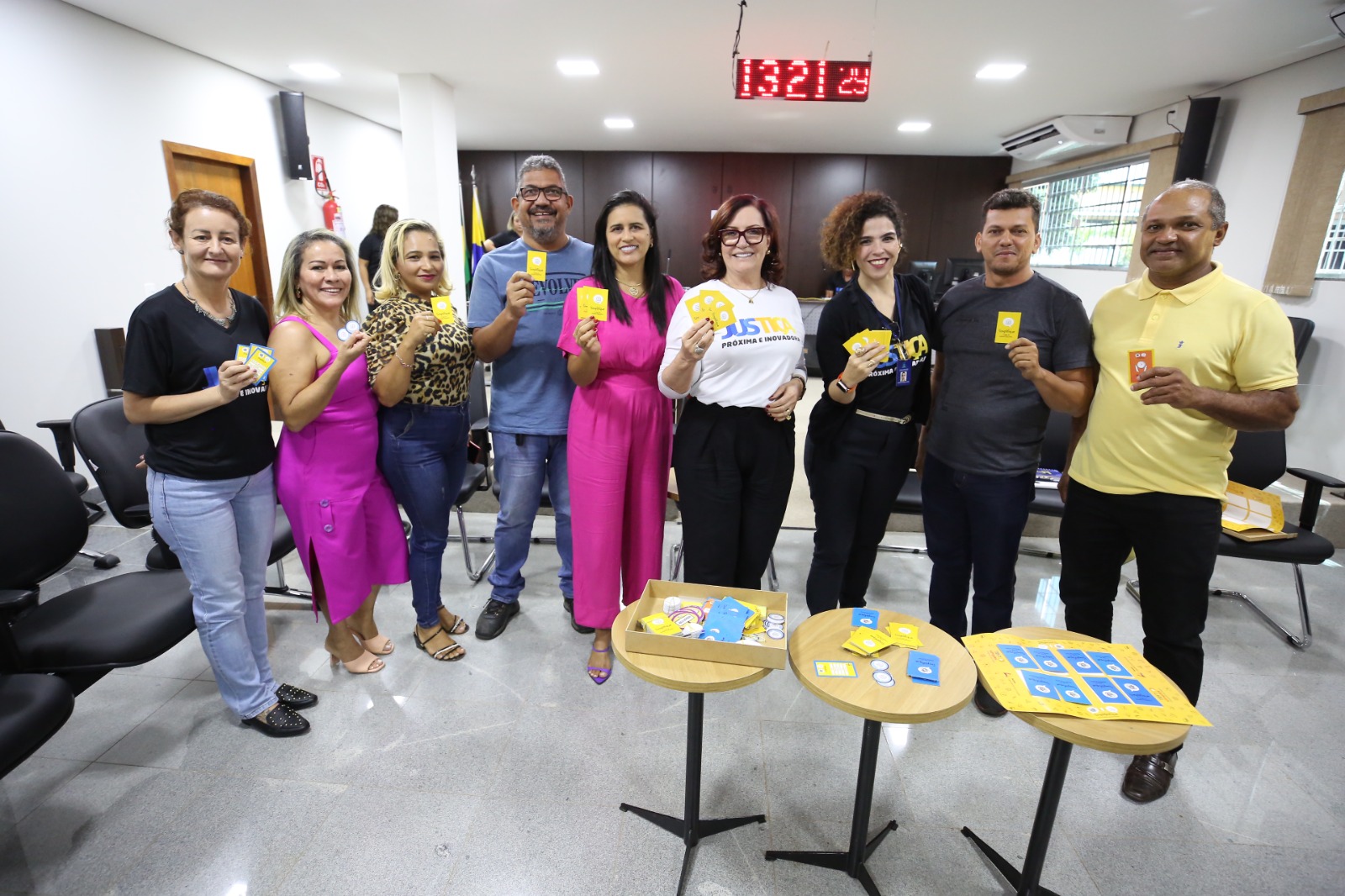 Durante a programação de atividades, trabalhadores e trabalhadoras da Justiça em Pedro Afonso também conversaram com diretores e diretoras setoriais do TJTO. Ao jogarem o dado de perguntas e respostas, tiraram dúvidas sobre pecúnia, remoção, cessão e a recomposição salarial em unidade real de valor - URV (clique aqui e saiba mais). Também participaram do Jogo da Linguagem Simples, conhecendo um pouco mais sobre o SimplesTOC - Programa de Linguagem Simples do TJTO e a importância da tradução de conteúdo jurídico em uma comunicação acessível ao cidadão(ã).