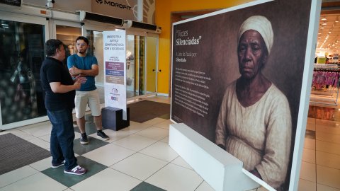 No meio do movimento apressado do Shopping Capim Dourado, em Palmas, uma ilha instalada em um dos corredores do centro comercial faz quem passa diminuir o passo. Diante dos painéis que contam a história de Paula, mulher negra que, em 1858, conquistou judicialmente a própria liberdade, visitantes se aproximam como quem encontra algo curioso.