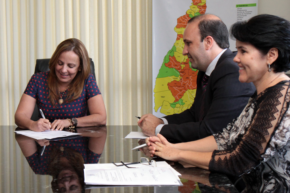 A presidente do Tribunal de Justiça do Estado do Tocantins, desembargadora Ângela Prudente, assinou na tarde desta terça-feira (13/5), a Ordem de Serviço para início da obra do novo Fórum da Comarca de Araguaína. O documento também foi assinado pelo secretário de Infraestrutura do Estado, Kaká Nogueira, pelo representante da construtora responsável pela obra, José Henrique Dahdah, pelo diretor geral do TJTO, Flávio Leali e pela diretora de Infraestrutura e Obras, Rosane Mesquita. Na oportunidade foi definida que a primeira visita ao canteiro de obras será realizada no dia 26/5, com a presença de magistrados e autoridades.