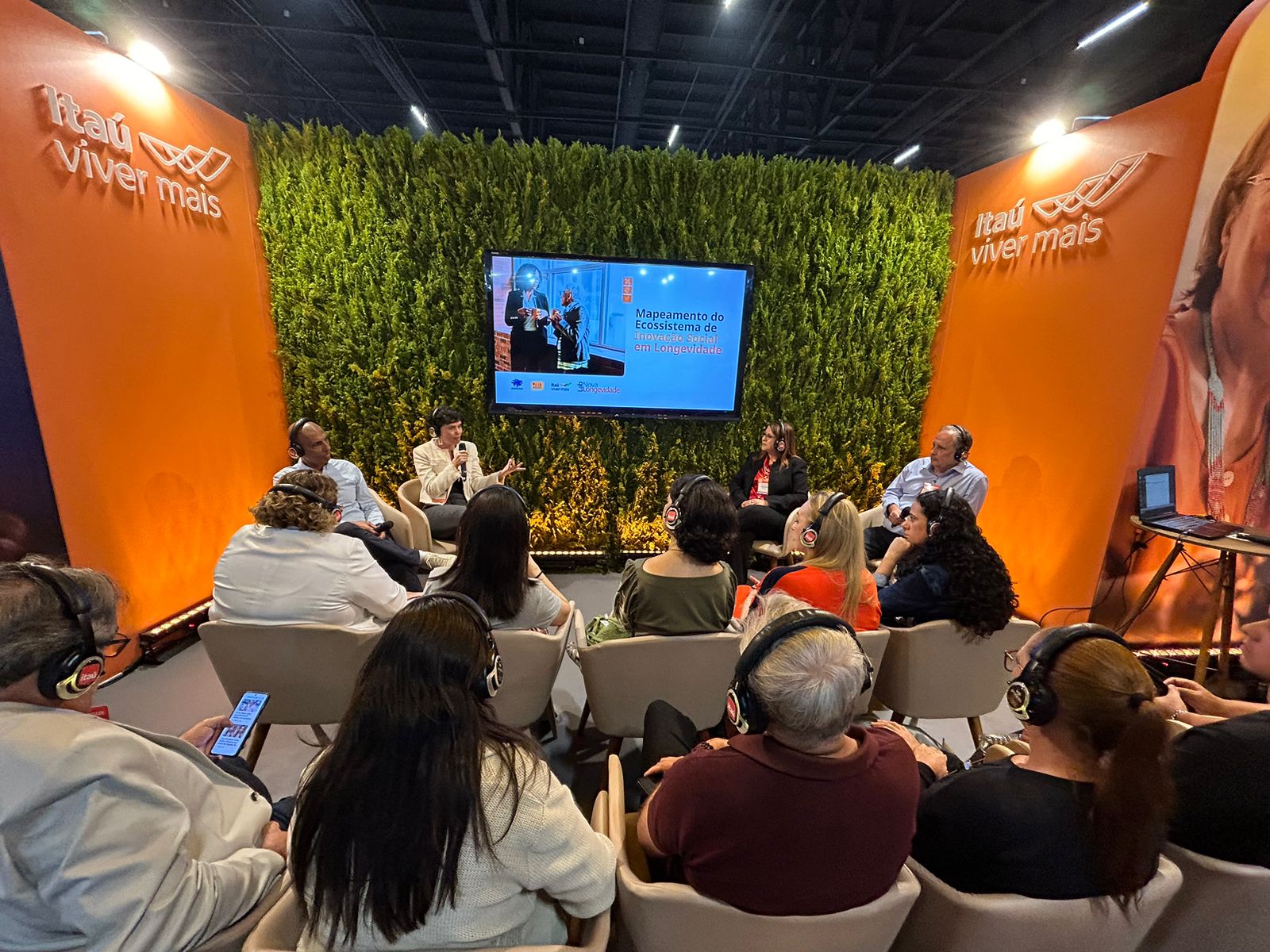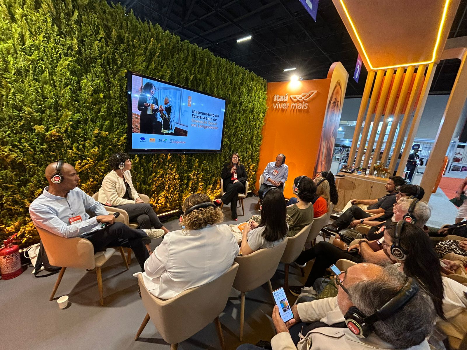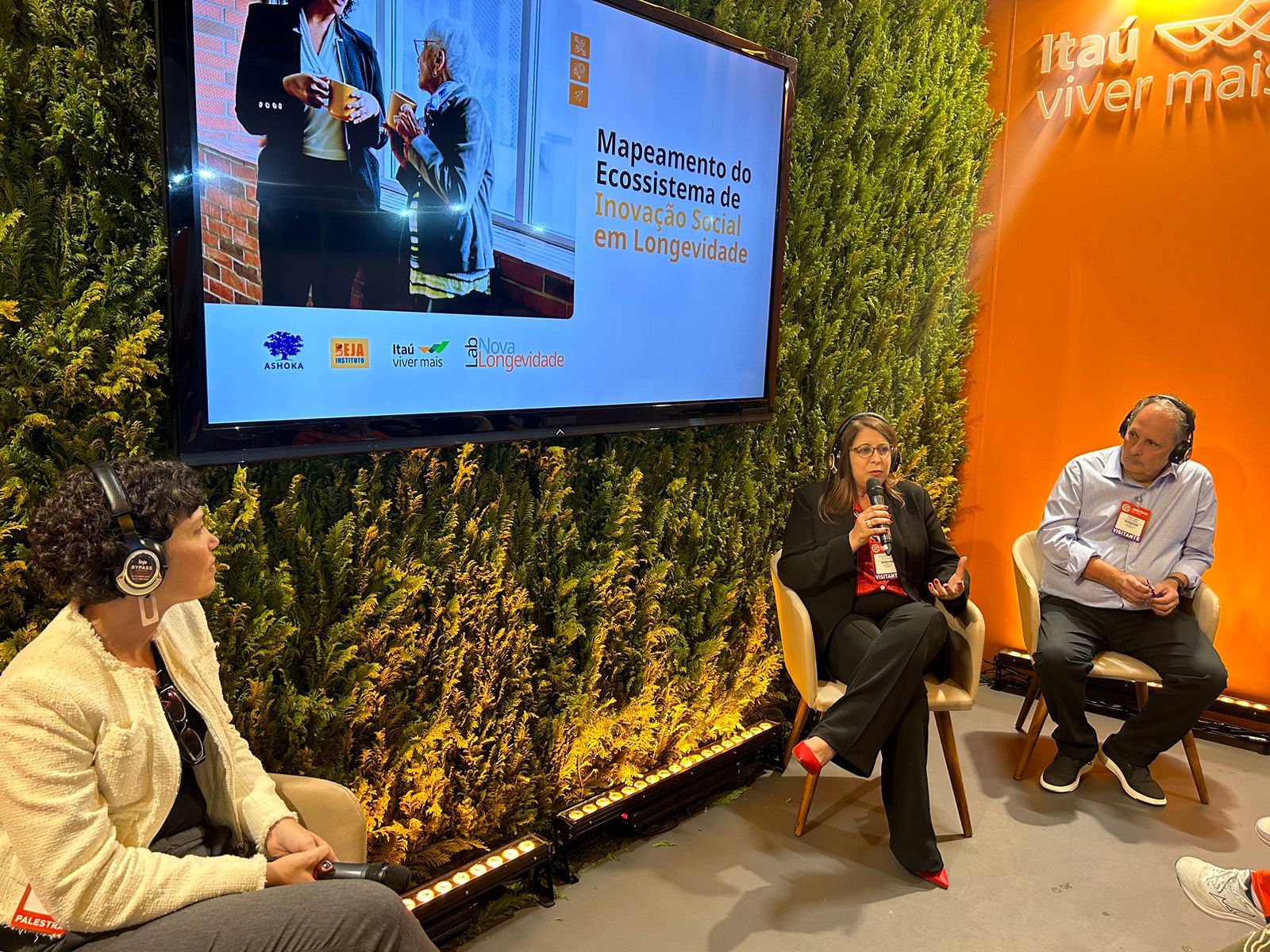 A escritora e pesquisadora da interface tecnologia e envelhecimento, Marília Duque, mediou a roda de conversa, que contou também com a participação do secretário de Inclusão Digital e Equidade do Rio Grande do Sul, Antonio Marcelo da Silva, e do criador da plataforma Longeviver, Eduardo Ferreira.