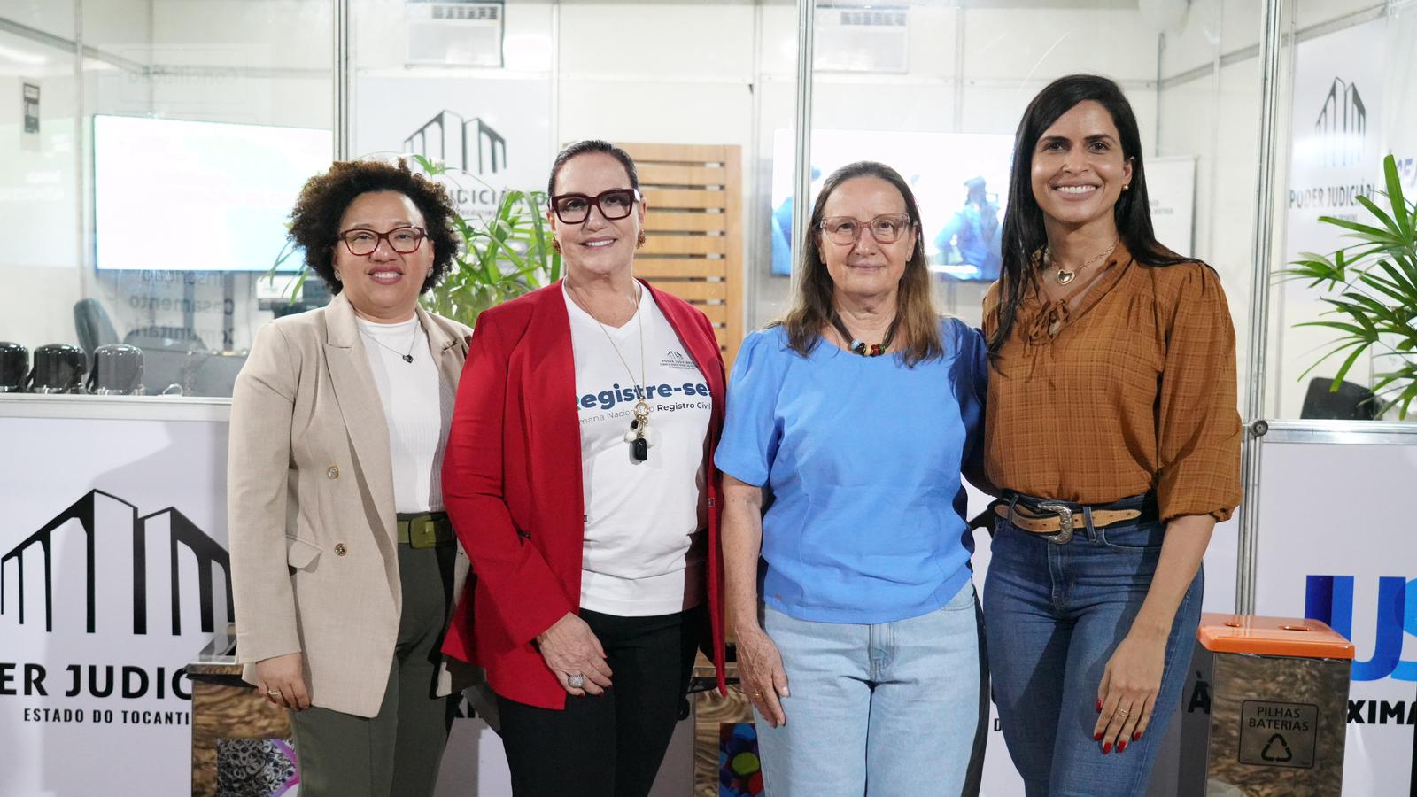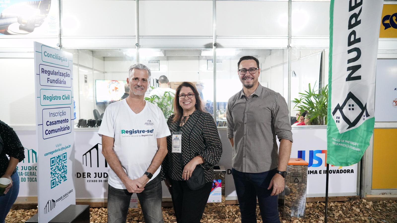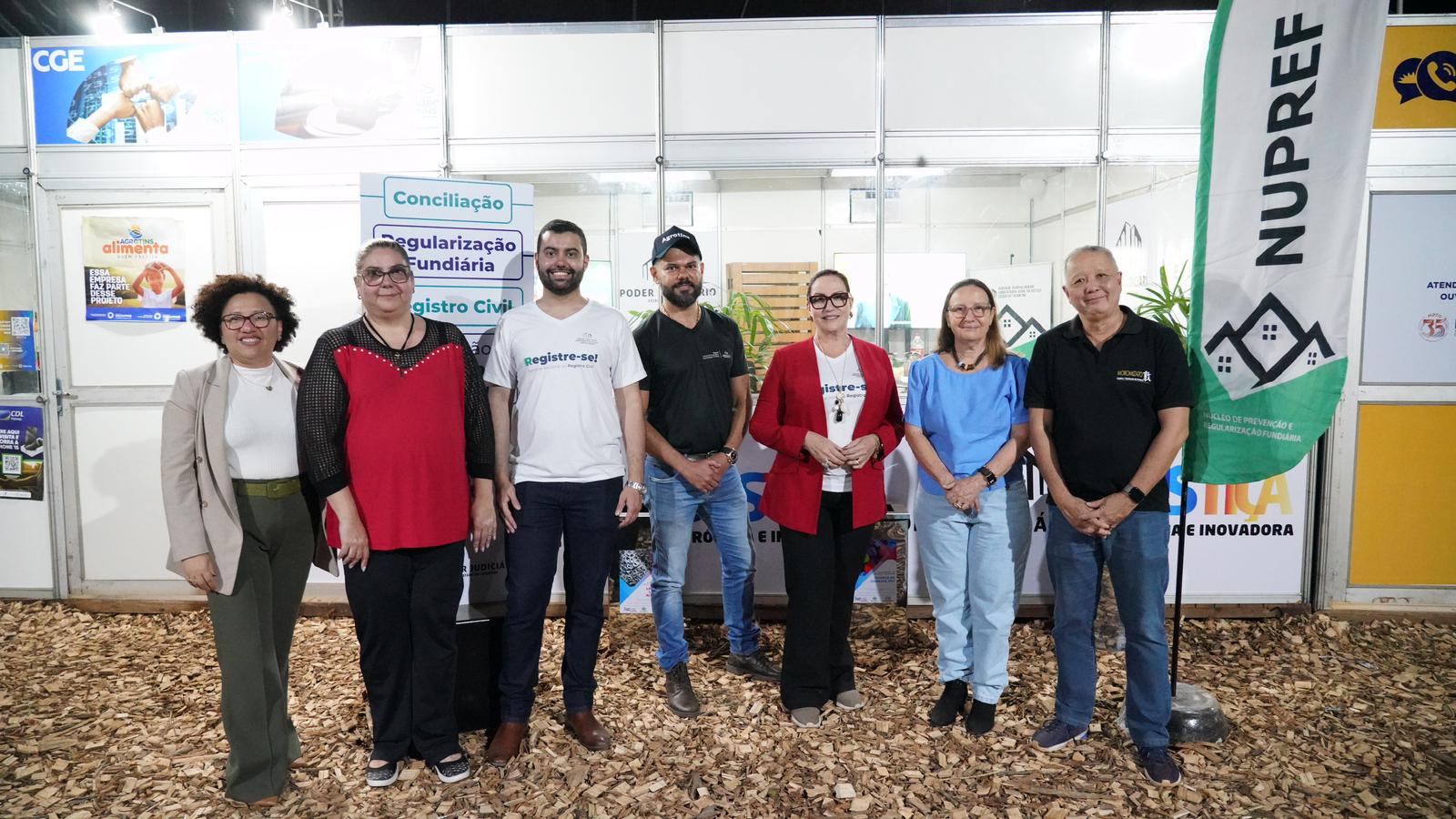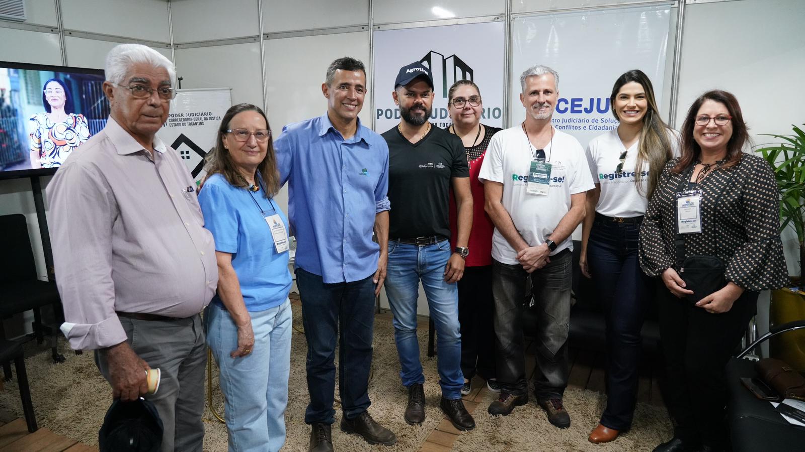 Durante a visita, estiveram no estande o juiz auxiliar da CGJUS, Esmar Custódio Vêncio Filho, o juiz coordenador do Nupref, Wellington Magalhães, a juíza Flávia Afini Bovo, diretora do Foro da Comarca de Palmas; a juíza da Cidadania da CGJUS, Odete Almeida; o diretor-presidente da Companhia Imobiliária de Participações, Investimentos e Parcerias – Tocantins Parcerias, Aleandro Lacerda Gonçalves, o presidente do Itertins, Robson Figueiredo; o presidente do  Instituto de Estudos de Protesto de Títulos, Geraldo Henrique Moromizato; o presidente do Naturatins, Renato Jayme,  a chefe de gabinete da presidência, Jeane Justino e, a chefe de gabinete da CGJUS, Lívia Guimarães.