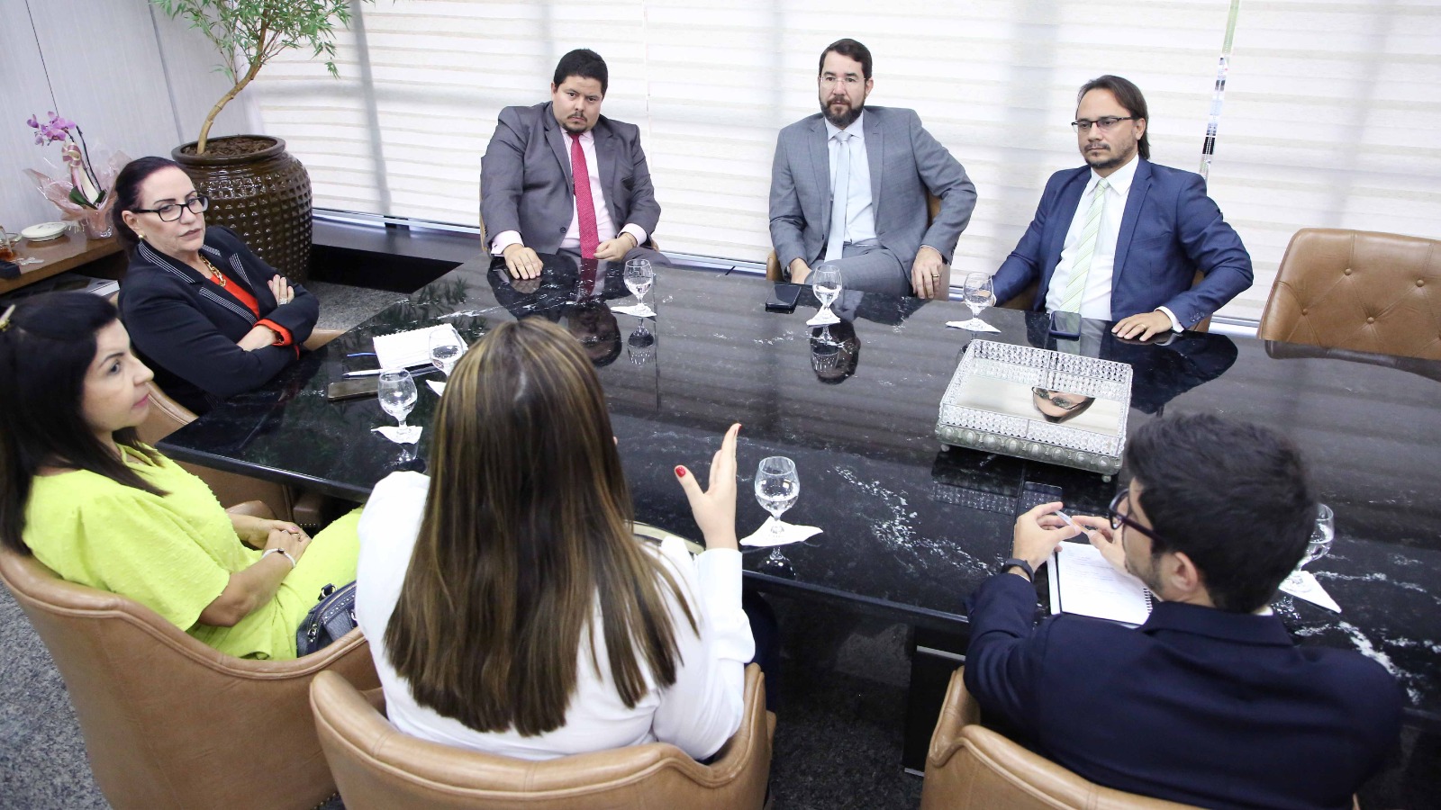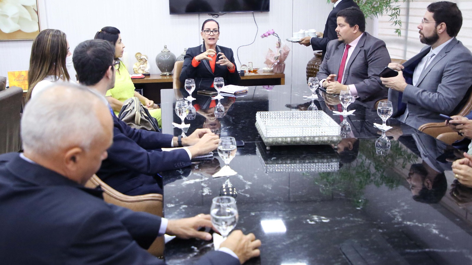 Com o mesmo foco, a presidente do TJTO também se reuniu com o procurador-geral do Estado, Kledson de Moura Lima, que estava acompanhado por outros procuradores do Estado. Na pauta, demandas relativas às áreas judiciais e administrativas.