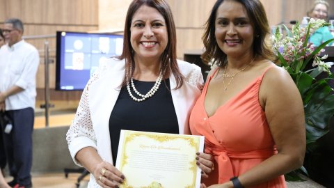 Já com a Láurea de Reconhecimento, a ABMCJ-TO homenageou 17 mulheres investidas atualmente em cargos de chefia ou que são símbolos de representatividade no Sistema de Justiça. Do TJTO receberam a honraria, as juízas Odete Almeida – presidente da Asmeto; Rosa Maria Gazire Rossi – juíza auxiliar da Presidência; Flávia Afini Bovo – diretora do Foro de Palmas; Juliane Marques – vice-presidente da AMB; Ana Paula Brandão Brasil – ouvidora eleitoral; e Edssandra Barbosa – coordenadora do programa +Mulher +Democracia do TRE-TO. Do Poder Judiciário também foram homenageadas as servidoras Jeane Justino, chefe de gabinete da Presidência; Lívia Guimarães, chefe de gabinete da Corregedoria-Geral da Justiça; Maria Vera de Lima Nogueira, presidente da Associação dos Servidores (ASTJ); e Alessandra Adorno, coordenadora da Ouvidoria da Mulher do TJTO.