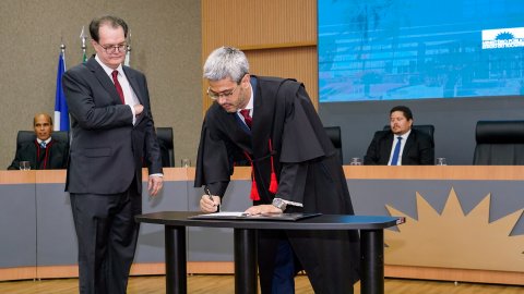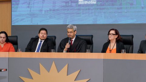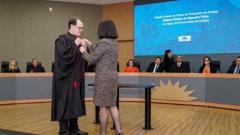 A presidente do Tribunal de Justiça do Tocantins (TJTO), desembargadora Etelvina Maria Sampaio Felipe, participou da sessão solene de posse do promotor de Justiça Miguel Batista de Siqueira Filho, no cargo de procurador de Justiça. O evento foi realizado nesta quarta-feira, 9, no Auditório do Ministério Público do Tocantins (MPTO), em Palmas.