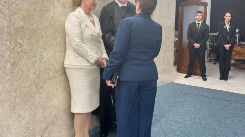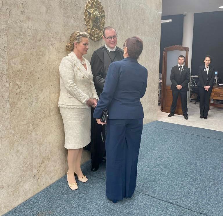 A presidente do Tribunal de Justiça do Tocantins (TJTO), desembargadora Etelvina Maria Sampaio Felipe, prestigiou nesta quinta-feira (3/8) a posse do novo ministro do Supremo Tribunal Federal (STF), Cristiano Zanin. A sessão solene foi realizada no plenário da Corte e contou com a presença do presidente Luiz Inácio Lula da Silva, de chefes de outros poderes e várias autoridades.