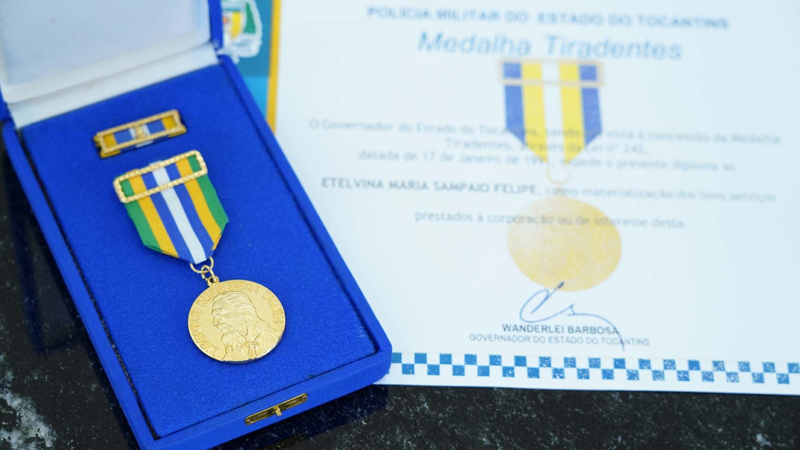 A presidente do Tribunal de Justiça do Tocantins (TJTO), desembargadora Etelvina Maria Sampaio Felipe, recebeu, na manhã desta quinta-feira (27/4), a medalha de “Tiradentes”, da Polícia Militar tocantinense. A honraria é concedida a todas as autoridades civis, militares e eclesiásticas que tenham prestado relevantes serviços ao Estado ou, em especial, à Corporação ou no interesse desta.