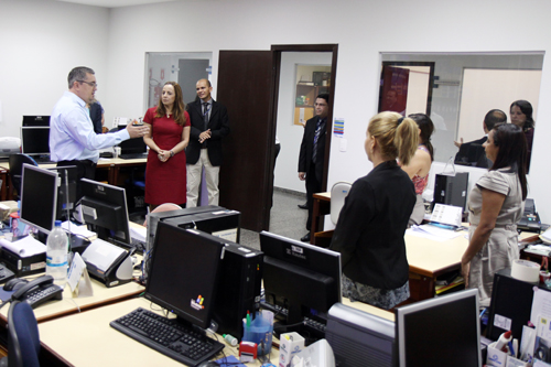 Acompanhada dos Diretores, a Presidente fez questão de ir a todos os departamentos, cumprimentar os servidores e ouví-los.