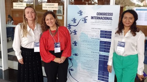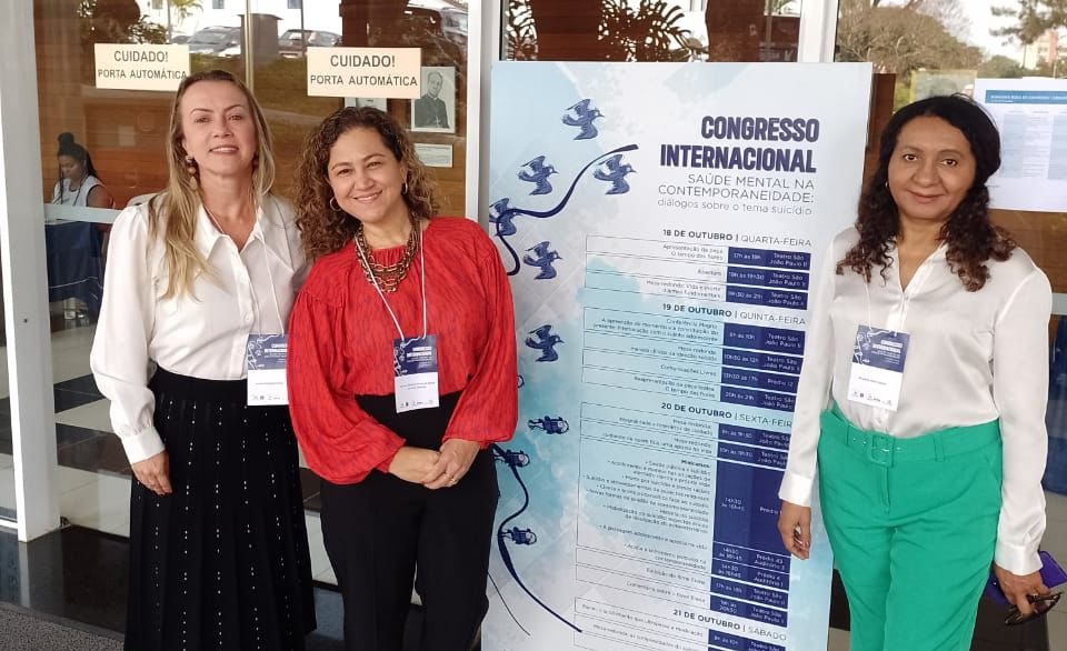 As psicólogas Bárbara Camargo, Janaína Araújo e a assistente social Silvaneide Maria Tavares, profissionais que integram a equipe multidisciplinar do Núcleo de Acolhimento e Acompanhamento Psicossocial (NAPsi) do Poder Judiciário do Tocantins, participam do I Congresso Internacional - Saúde Mental na Contemporaneidade: Diálogos sobre o tema Suicídio. O evento começou na última quarta-feira (18/10) e vai até domingo (22), no Campus Coração Eucarístico, em Belo Horizonte (MG).