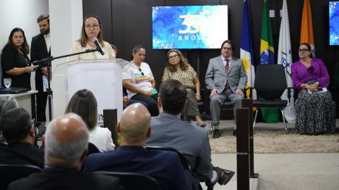 A defensora pública Tereza de Maria Bonfim Nunes falou do seu orgulho de trabalhar em Pedro Afonso, sua cidade natal e onde construiu família. Ela reforçou ainda a importância de um local de trabalho com uma boa estrutura e com servidores (as) comprometidos (as). “A comunidade merece, nós merecemos, porque a gente fica muito tempo aqui e é bom você chegar a um local bom. Eu agradeço, em nome da Defensoria Pública, de poder estar aqui falando, de parabenizar o Tribunal de Justiça, o Judiciário, por essa grandeza dessa obra que aqui a gente está sendo entregue à comunidade de Pedro Afonso hoje.”