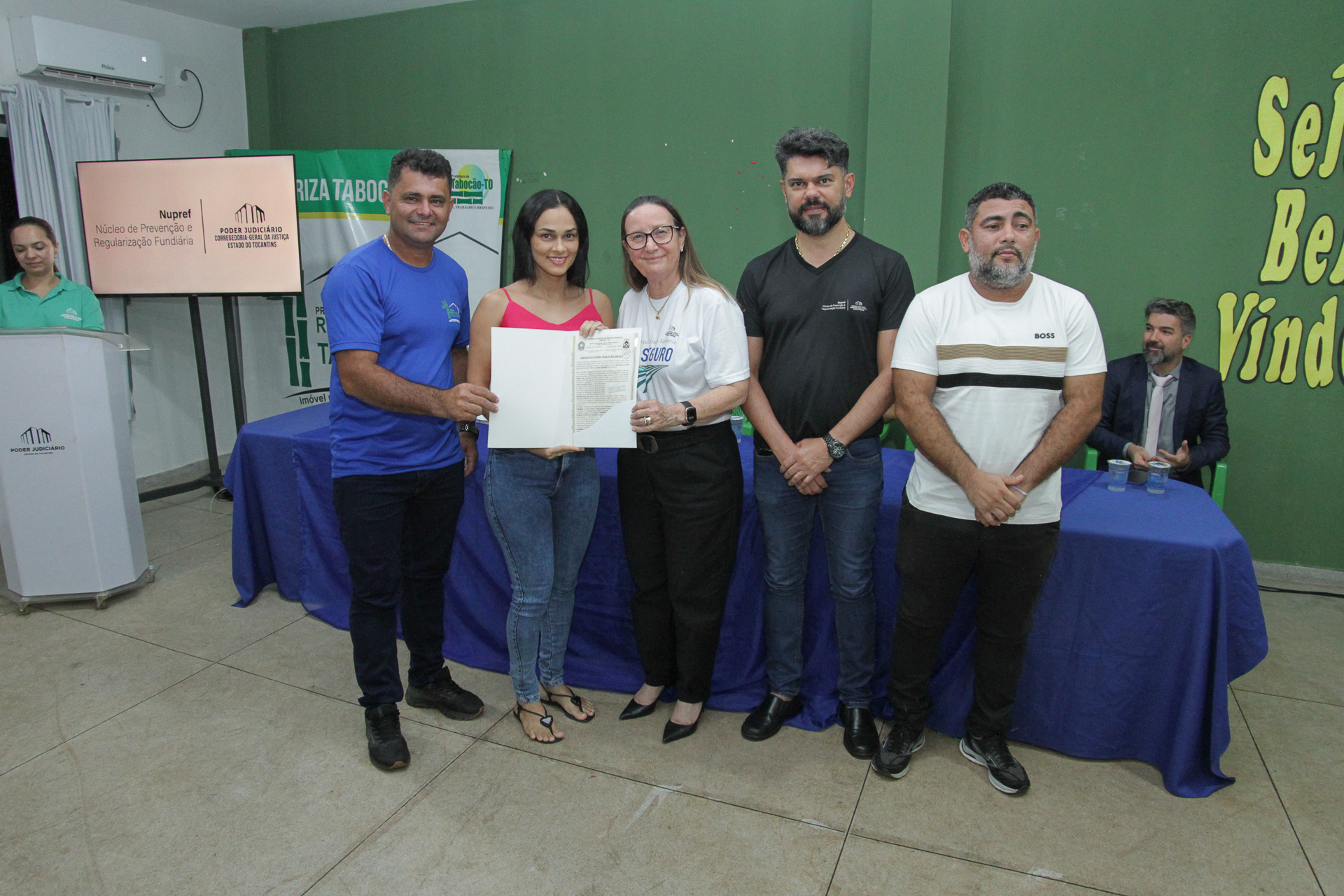 A Corregedoria-Geral da Justiça do Tocantins (CGJUS) entregou, nesta quarta-feira (11/12), 268 títulos de propriedade da regularização fundiária nos municípios de Piraquê, Bandeirantes e Tabocão. A promoção da governança de terras no estado é resultado do trabalho desenvolvido pelo Núcleo de Prevenção e Regularização Fundiária (Nupref/CGJUS), que desde 2018 atua em parceria com os municípios, cartórios de Registro de Imóveis e governos estadual e federal.