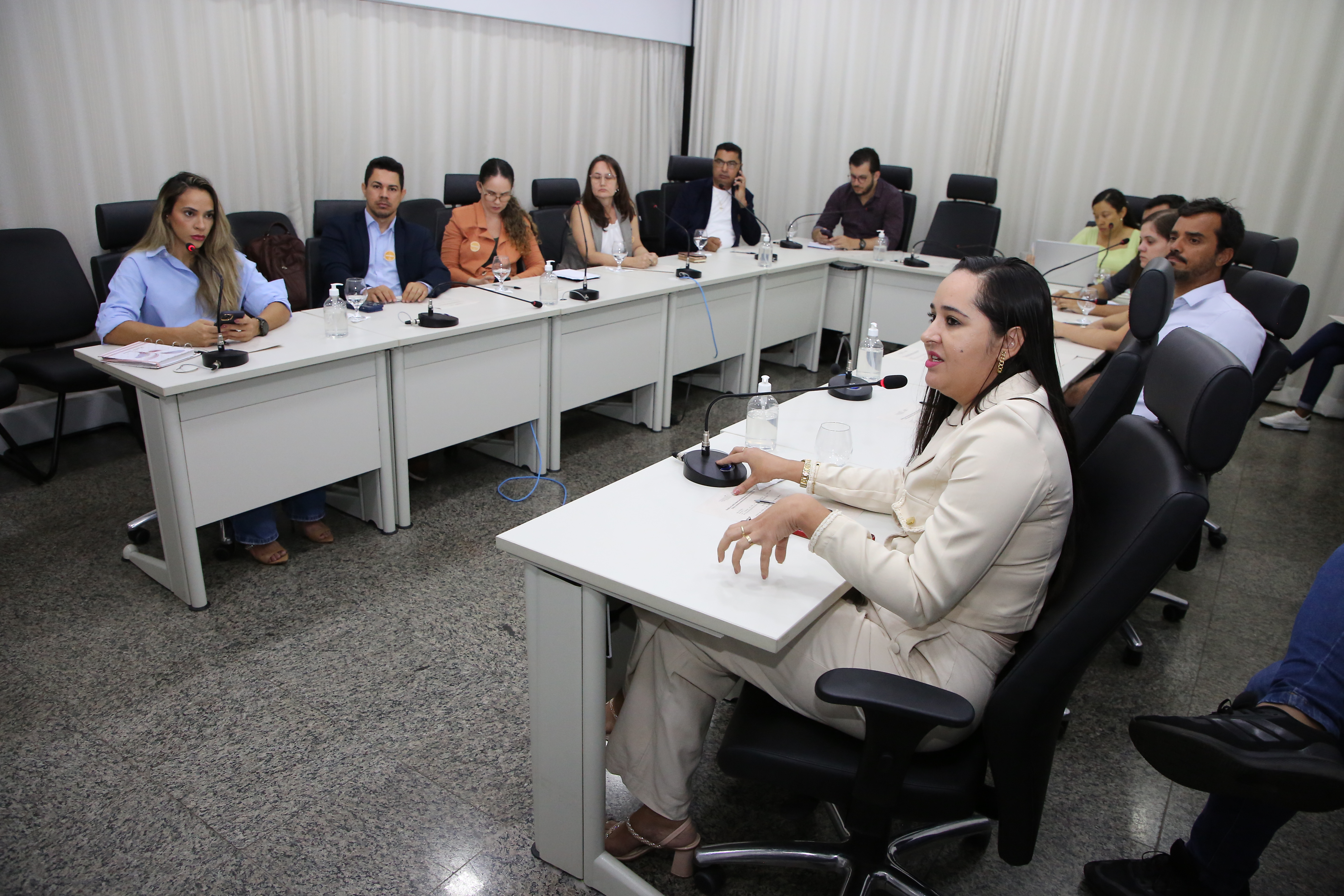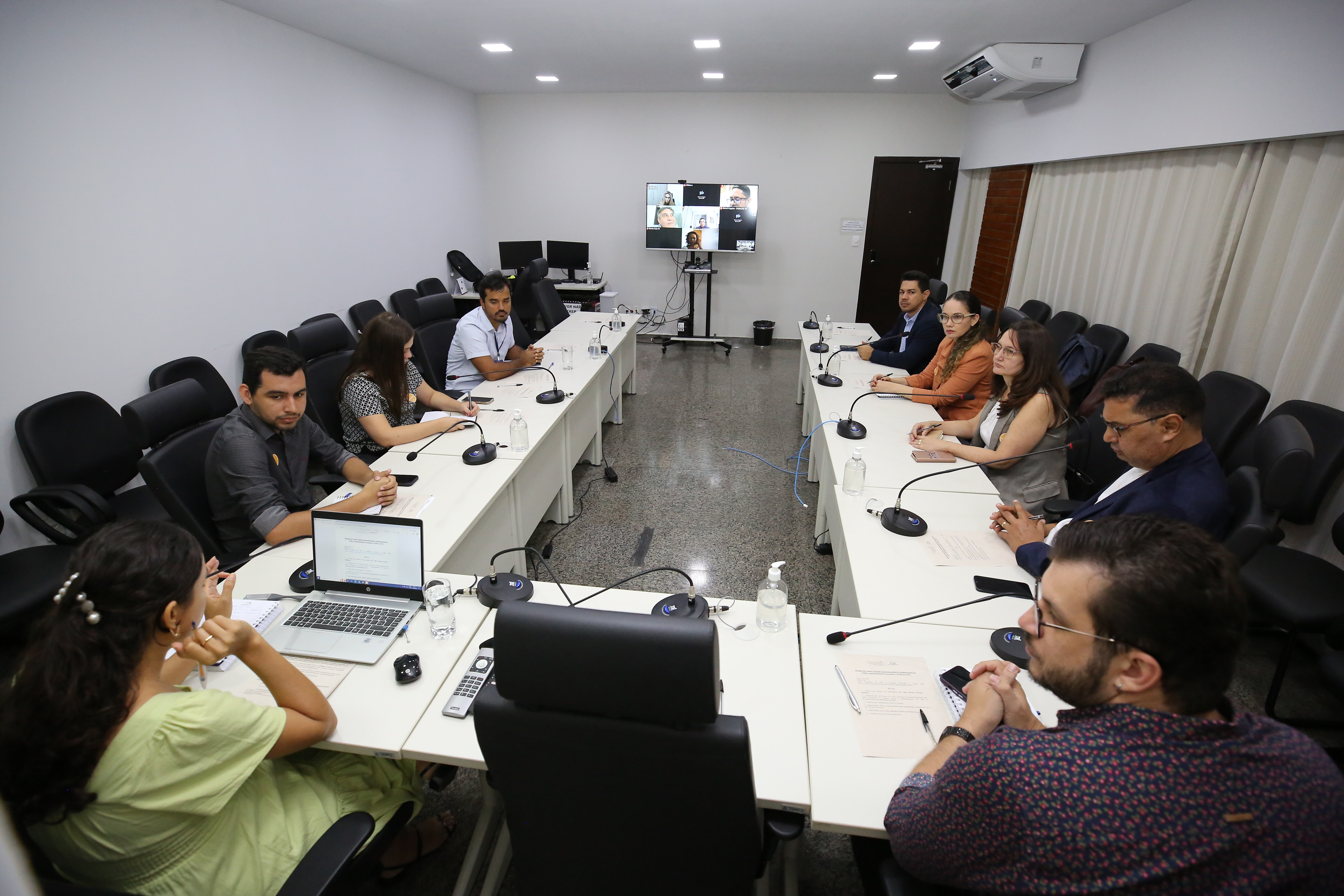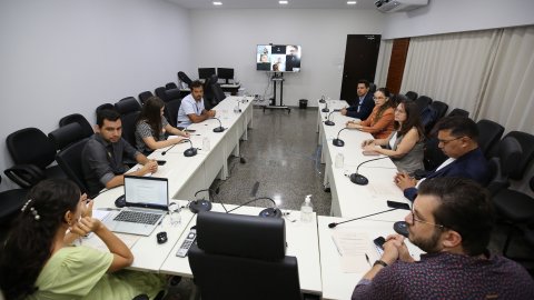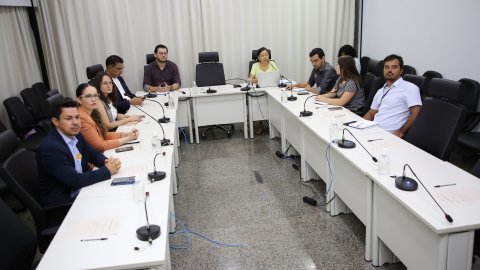 Elias Oliveira/Cecom-TJTO Imagem mostra pessoas sentadas em volta da mesa do Cinugep durante reunião do Ceimpa/TJO