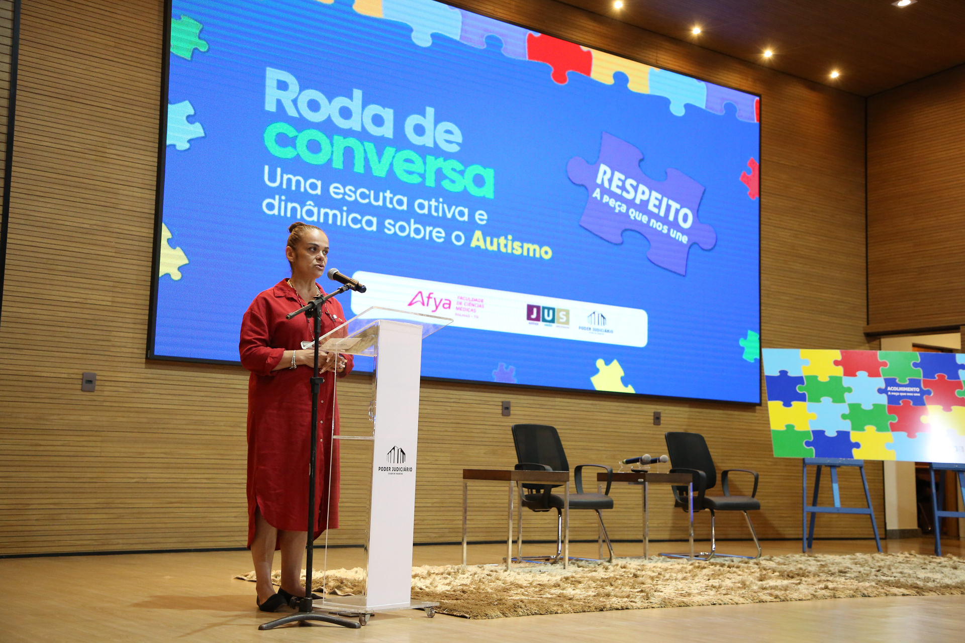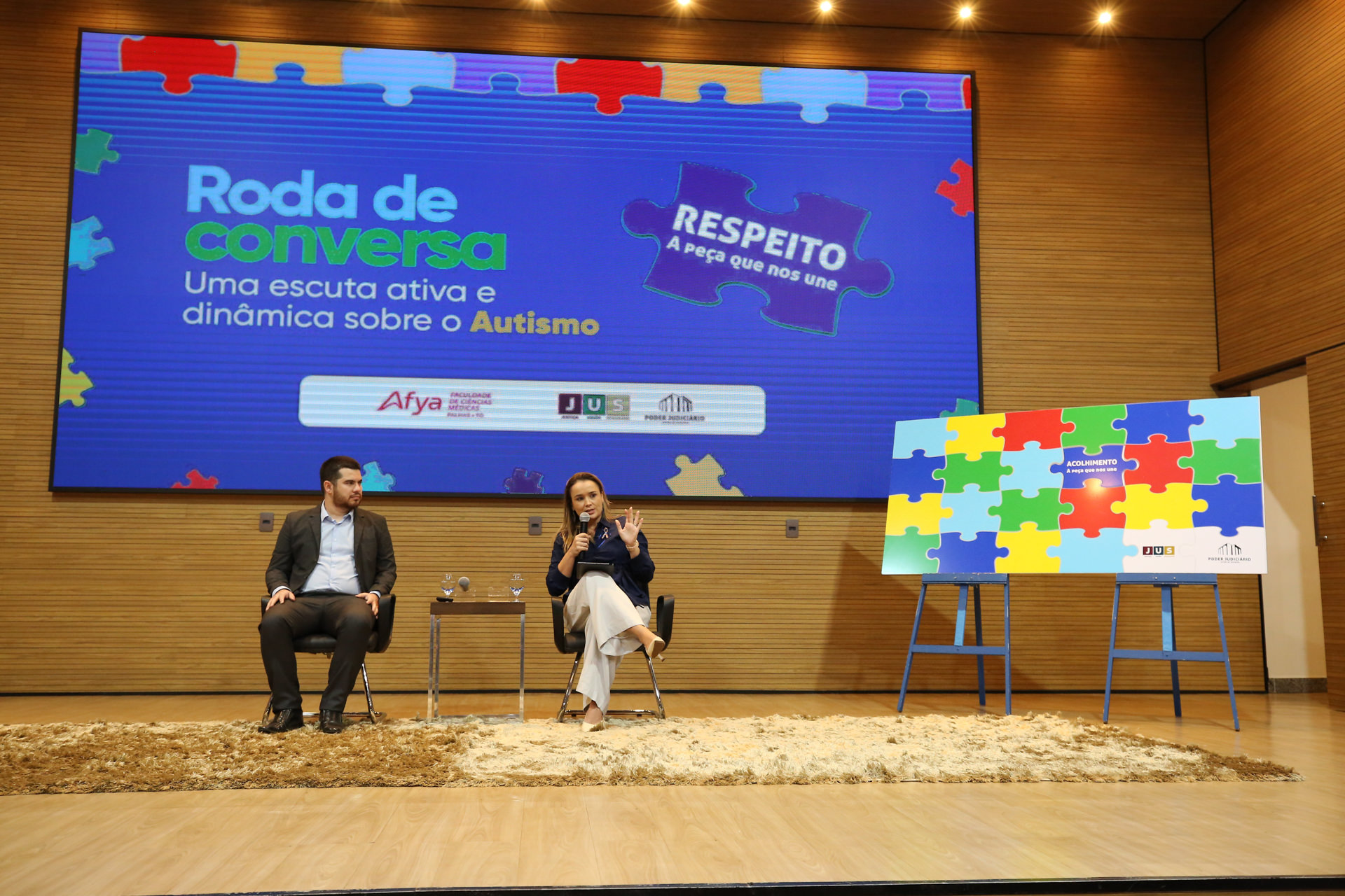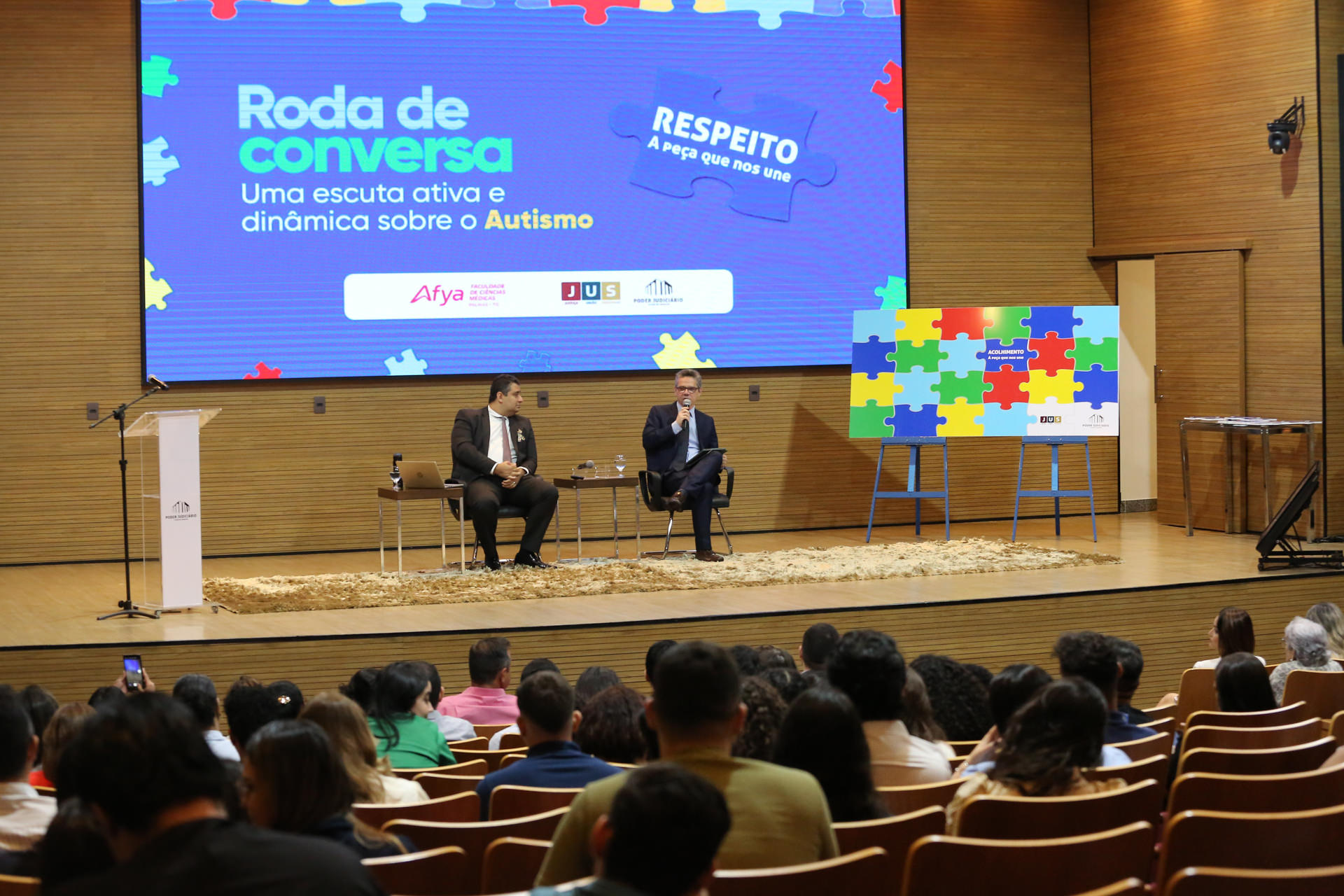 Respeito, inclusão, amor e acolhimento foram algumas das palavras escolhidas pelos participantes para compor um quebra-cabeça temático durante a "Roda de conversa: uma escuta ativa e dinâmica sobre o Autismo". A atividade simbólica, pensada para estimular a interação e a reflexão, marcou o evento realizado na manhã desta quarta-feira, 2 de abril, Dia Mundial e Nacional de Conscientização sobre o Autismo, no auditório do Tribunal de Justiça do Tocantins (TJTO), em parceria com a Faculdade Afya.