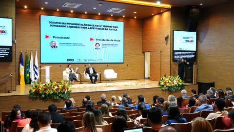 Presidindo a Mesa, a desembargadora Ângela Issa Haonat, diretora adjunta da Esmat e coordenadora dos Cejuscs de 2º Grau do TJTO, deu ênfase na importância de adaptar boas práticas de outros tribunais à realidade tocantinense. Em tom pessoal, relembrou os tempos em que o Tocantins, ainda parte do Norte de Goiás, vivia um atraso histórico no acesso a direitos. Conforme explicou, a Constituição de 1988 representou um marco de transformação social, impulsionando uma explosão de demandas judiciais como expressão da cidadania.