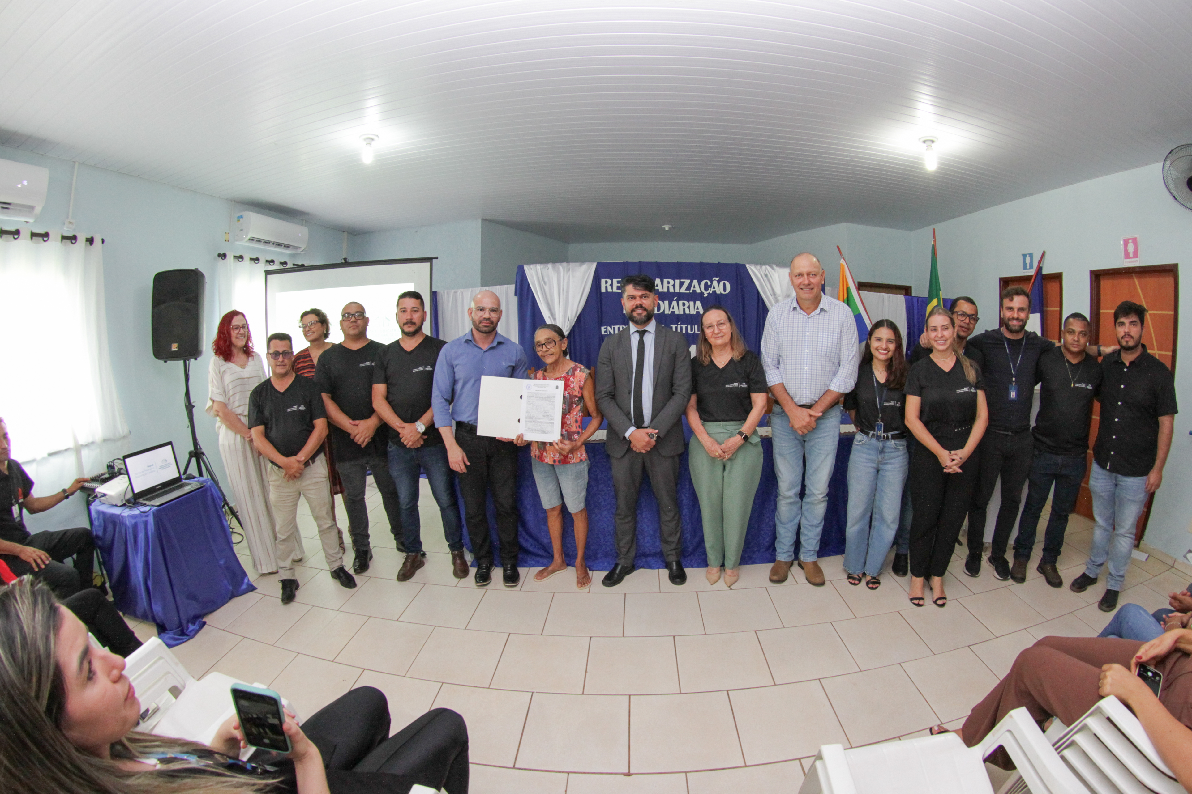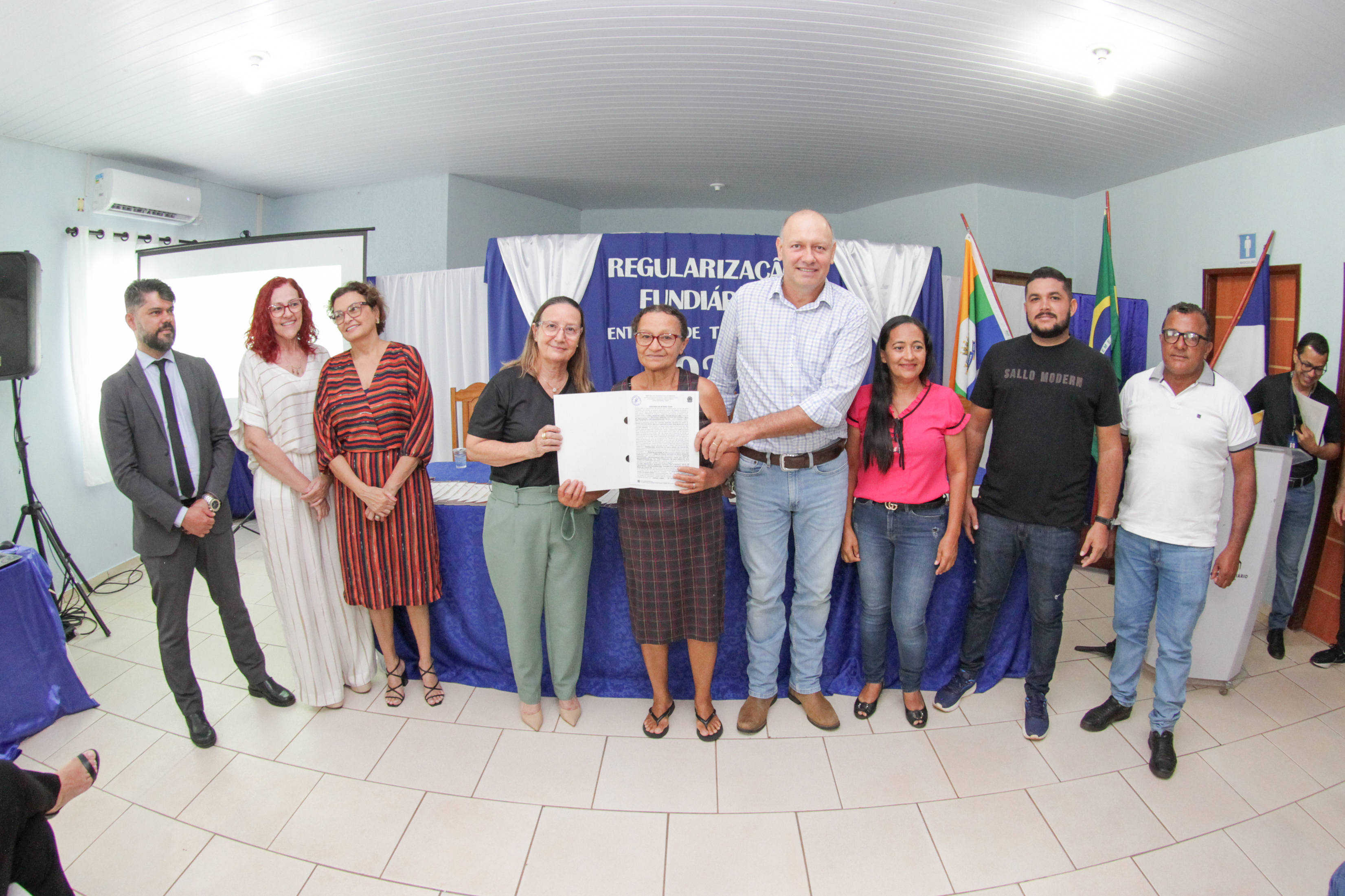 Na tarde de terça-feira (12/3), o salão do Centro de Referência de Assistência Social - CRAS Maria dos Reis Rocha, em Santa Maria do Tocantins ficou cheio, de gente e de alegria, durante a solenidade de entrega de títulos imobiliários, promovida pela Corregedoria-Geral da Justiça do Tocantins (CGJUS), por meio do Núcleo de Prevenção e Regularização Fundiária (Nupref), prefeitura Municipal e instituições parceiras.
