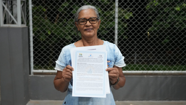 “É uma alegria muito grande receber esse documento da minha casa, que construí para os meus filhos e hoje realizamos o sonho de ter o documento dela depois de 54 anos”, afirmou a moradora Zuleide Alves, durante a abertura da Semana Nacional Solo Seguro – Favela, realizada na noite desta quarta-feira (12/6), em Araguaína.