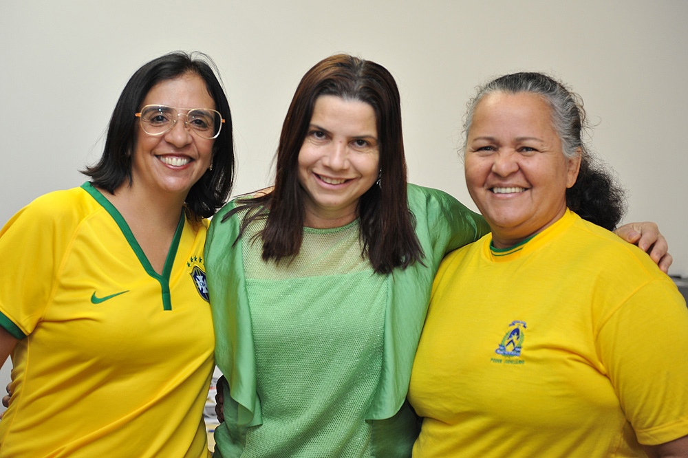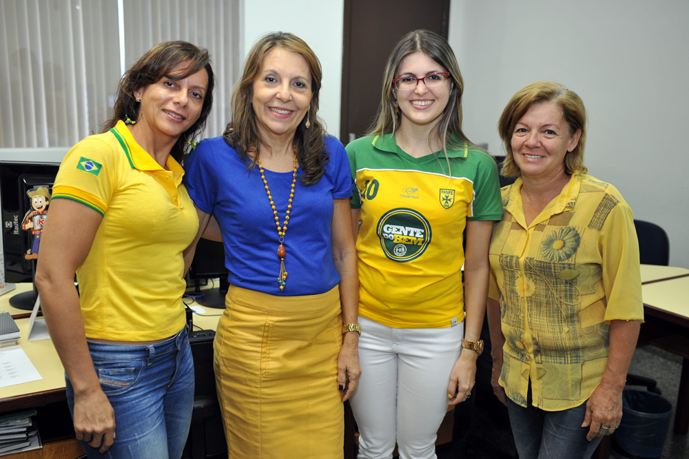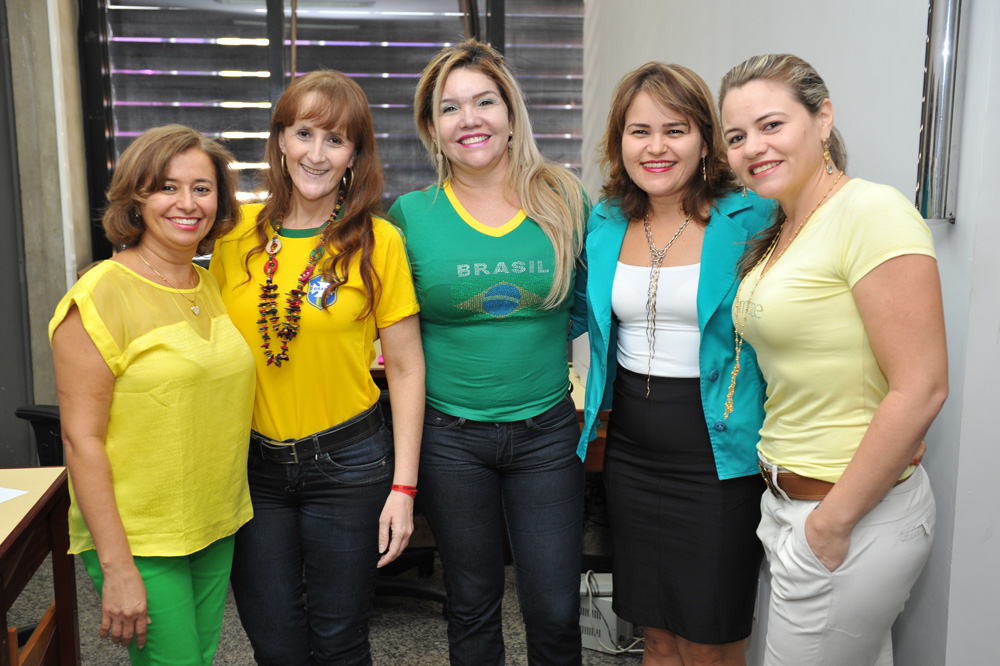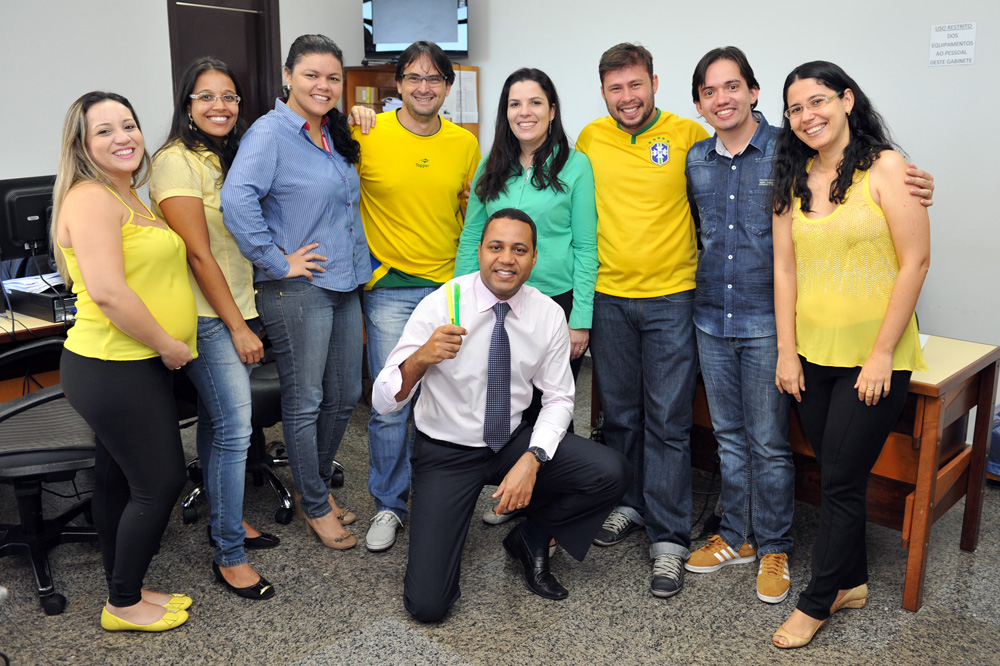 Não foi nada combinado, mas muitos servidores vieram trabalhar vestidos com as cores da bandeira brasileira, nesta quinta-feira (12/6), dia da abertura da Copa do Mundo e estreia do Brasil, que enfrentou a Croácia. As mulheres capricharam no visual, usando além das roupas, acessórios e esmaltes nas unhas nas cores da seleção canarinha. Em alguns departamentos, como a Diretoria de Gestão de Pessoas, os servidores fizeram camisas personalizadas para torcer pelo Brasil com muito estilo e animação. Vejam alguns registros do clima da Copa, que tomou conta do Tribunal de Justiça do Tocantins, anexos e comarcas. Você pode conferir também na página oficial do TJTO no Facebook https://www.facebook.com/media/set/?set=a.556437514467511.1073741827.278298195614779&type=1