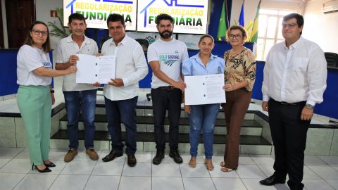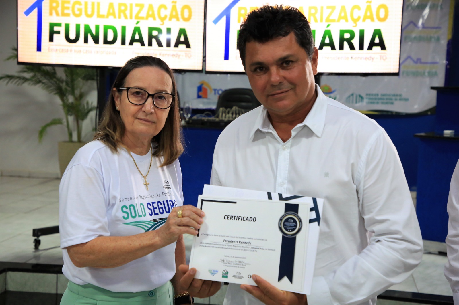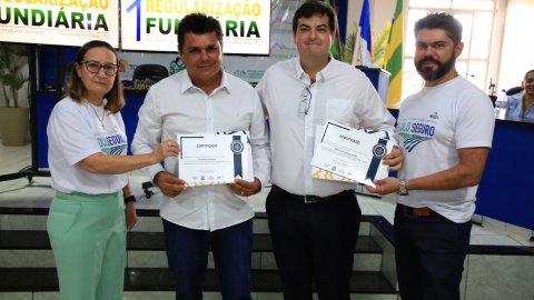 Na ocasião, foi concedido o selo prata de responsabilidade social “Quem Regulariza Dignifica” ao prefeito João Batista Cavalcante e ao oficial do Cartório de Registro de Imóveis do município, Márcio Luiz do Vale Júnior.
