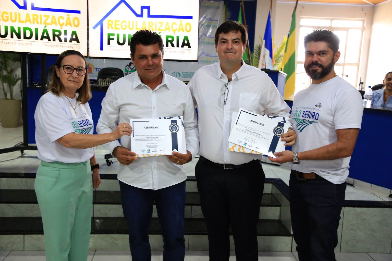 Participaram do evento, realizado na Câmara Municipal, a diretora imobiliária e comercial da Tocantins Parcerias, Zélia Bandeira; o secretário de Administração Olívio Carvalho, presidente da Comissão de Regularização Fundiária da cidade; e demais secretários municipais e vereadores de Presidente Kennedy.