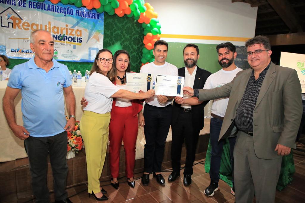 Em reconhecimento aos esforços empreendidos no avanço da regularização fundiária, durante o evento, a Corregedoria-Geral da Justiça concedeu ao prefeito José Salomão e ao oficial do Cartório de Registro de Imóveis da cidade, Herculano Bittencourt, o Selo Ouro de responsabilidade social “Quem Regulariza Dignifica”.