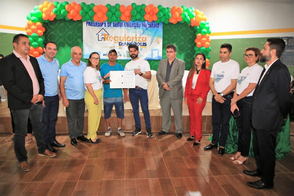 O sonho da conquista do título definitivo do imóvel tornou-se realidade para 316 moradores (as) do setor Nova Cidade II, em Dianópolis. Na noite desta terça-feira (29/8), eles (as) foram beneficiados com o documento que comprova a regularização fundiária das casas onde moram. A solenidade faz parte da programação da 1ª Semana Nacional de Regularização Fundiária - Solo Seguro, que acontece durante esta semana, em todos os estados da Amazônia Legal.