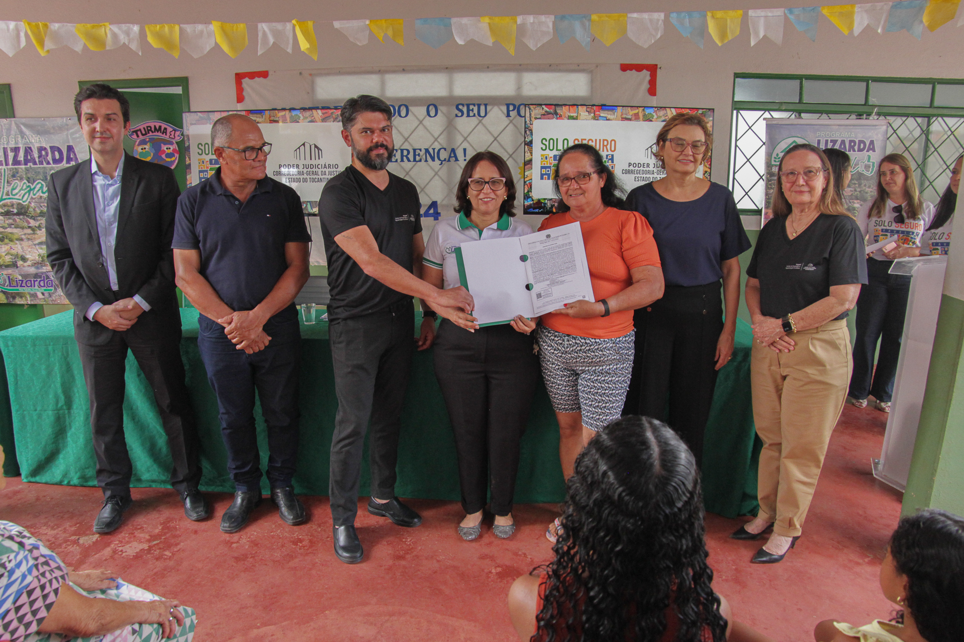 A solenidade de entrega de títulos em Lizarda faz parte das ações do Poder Judiciário do Tocantins  com foco na Semana Nacional de Regularização Fundiária - Solo Seguro.  A iniciativa  é coordenada pela Corregedoria Nacional da Justiça, em parceria com as corregedorias gerais de Justiça nos estados, visando promover a governança de terras em todo o país.