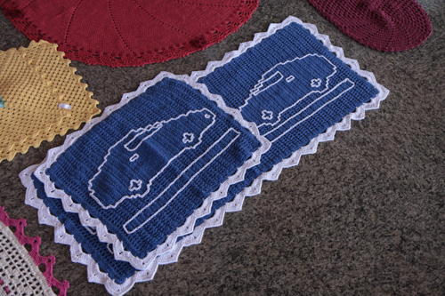 A exposição, que segue até sexta-feira, (9/5), reúne diversas peças, a maioria tapetes em crochê e relevo, “todas produzidas na CPPP pelas reeducandas em regime fechado e semi-aberto”, explica A. C., reeducanda e expositora.