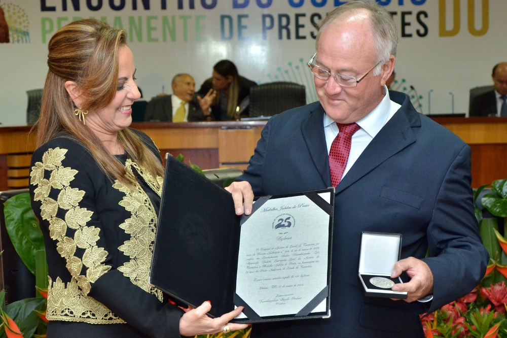 Para homenagear autoridades que contribuíram e contribuem para a Justiça tocantinense, a presidente do TJTO, desembargadora Ângela Prudente, outorgou a medalha “Jubileu de Prata” às autoridades: o governador do Estado do Tocantins, José Wilson Siqueira Campos; o ministro do Supremo Tribunal Federal, Ricardo Lewandowski; o presidente do Colégio, desembargador Milton Nobre; o membro da Comissão Executiva do Colégio desembargador Marcus Faver; o vice-presidente do TJTO, desembargador Moura Filho; e o corregedor geral da Justiça do Estado do Tocantins, desembargador Luiz Gadotti. Também receberam a medalha, os desembargadores: Jacqueline Adorno, Daniel Negry, Marco Villas Boas, Ronaldo Eurípedes e Eurípedes Lamounier.