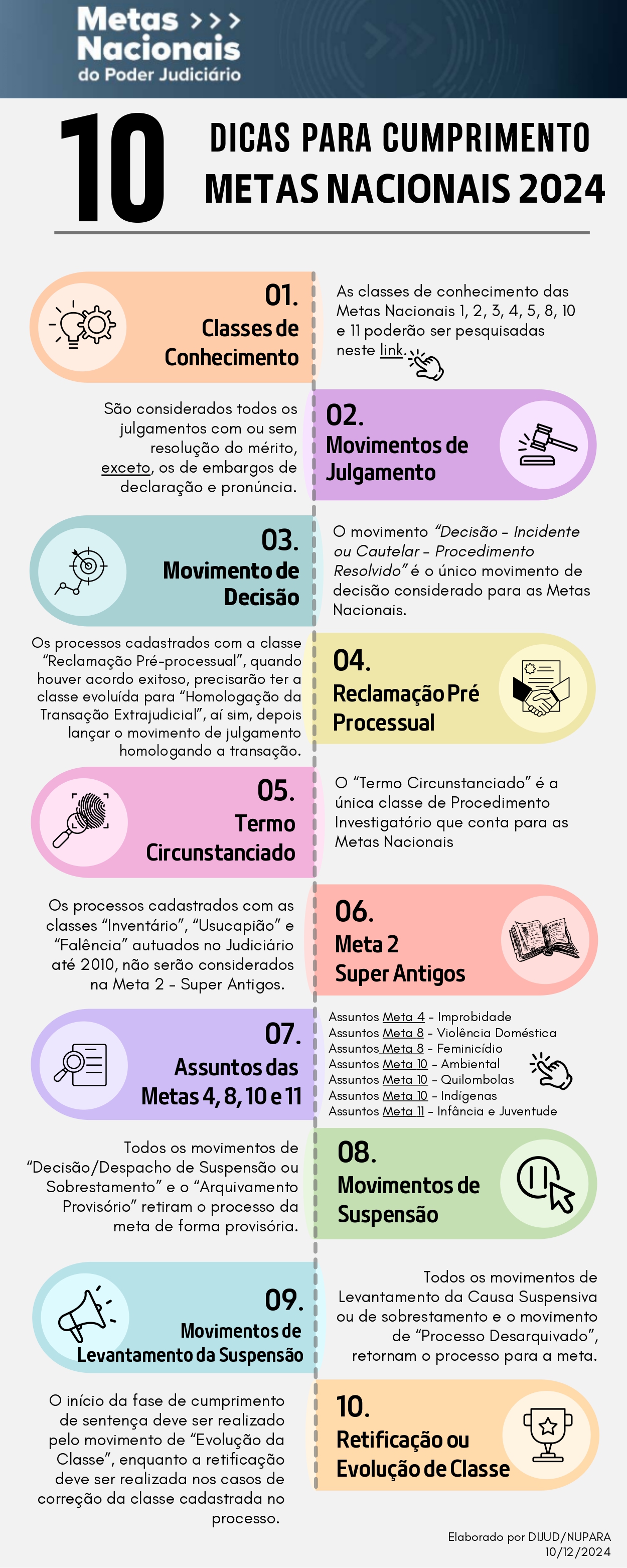 Com uma linguagem mais clara e objetiva, o informativo é dotado de elementos visuais como ícones e cores, tornando-o mais didático e acessível para os servidores e servidoras em suas rotinas diárias, visando o alcance das metas nacionais do Conselho Nacional de Justiça (CNJ).