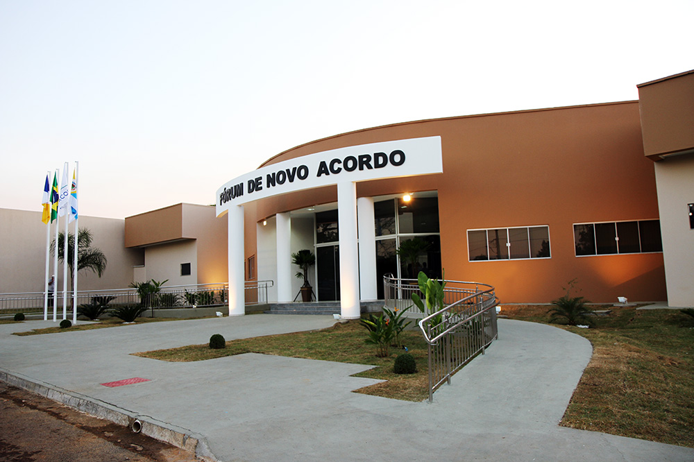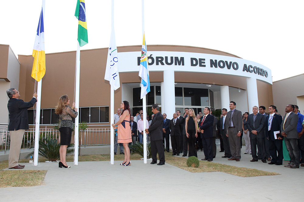 Aos vinte e cinco dias do mês de agosto do ano de 2014, sob a proteção de Deus, materializando um sonho acalentado por muitos anos, inauguramos, com instalações dignas da grandeza de seus habitantes, a sede definitiva do Fórum da Comarca de Novo Acordo”. O texto está registrado na Placa de inauguração descerrada pela presidente do Tribunal de Justiça do Tocantins, desembargadora Ângela Prudente e pela diretora da Comarca de Novo Acordo, juíza Aline Bailão Iglesias, selando a entrega oficial das novas instalações à Comarca.
