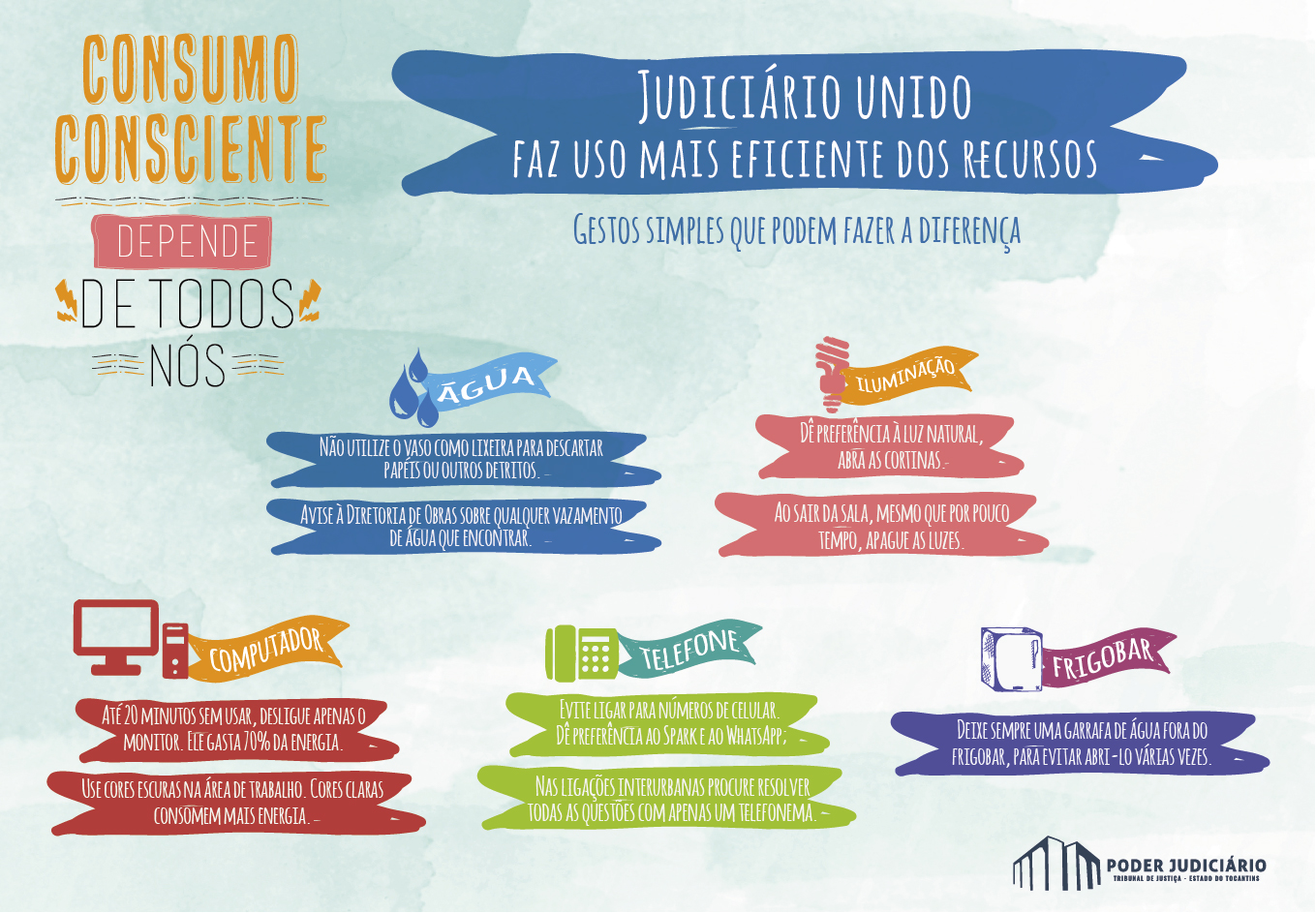 A campanha Consumo Consciente faz parte da política de alocação de recursos orçamentários para as despesas com telefonia, energia elétrica e água em atendimento à parceria firmada como Conselho Nacional de Justiça (CNJ), que escolheu o Judiciário tocantinense para implantar um projeto piloto juntamente com Minas Gerais e Mato Grosso.