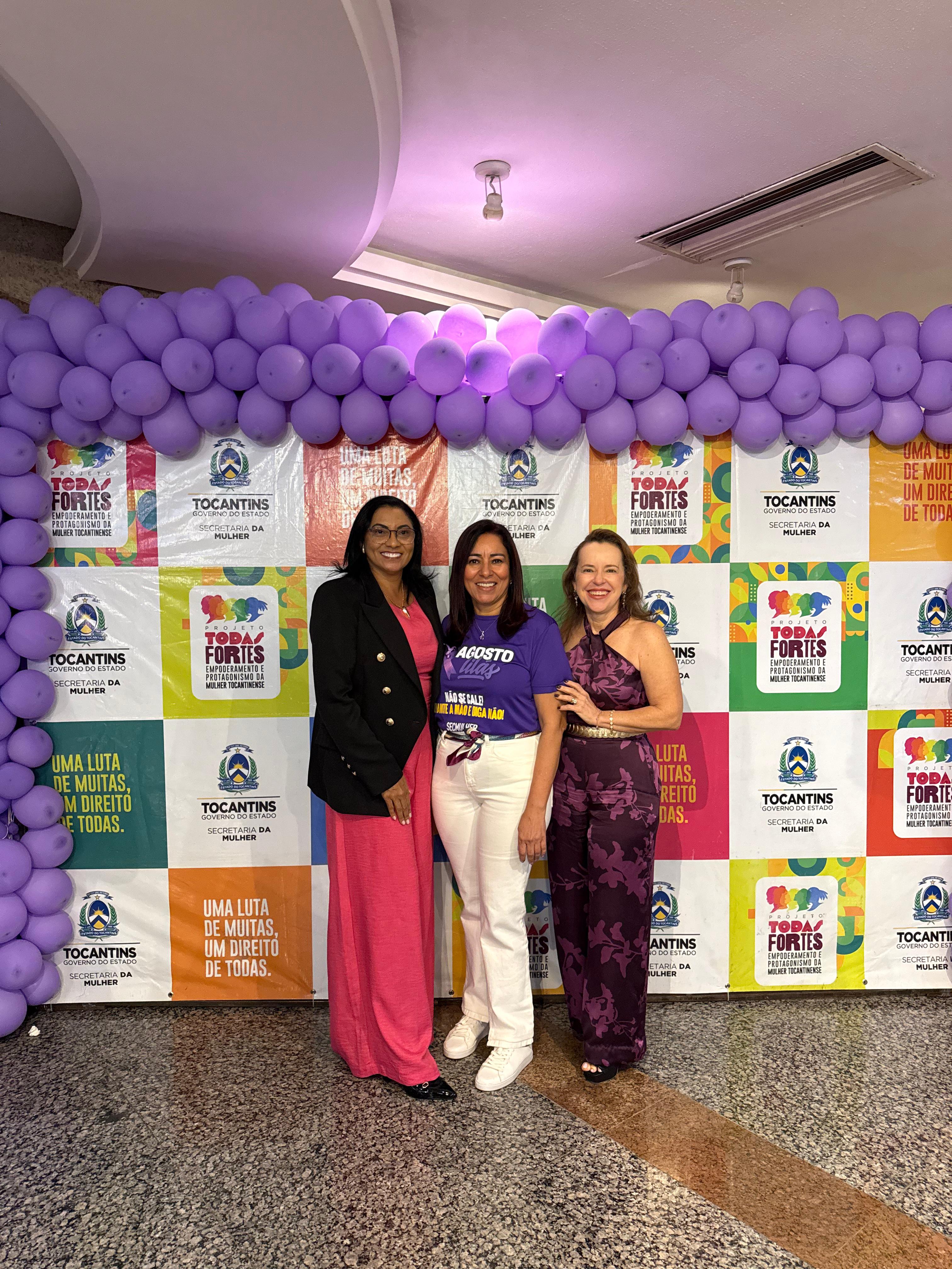 A coordenadora estadual da Mulher em Situação de Violência Doméstica e Familiar do Tribunal de Justiça do Tocantins (TJTO), juíza Cirlene Maria de Assis, participou, nesta sexta-feira (1º/8), juntamente com a equipe da Cevid, da abertura oficial da Campanha Agosto Lilás 2025, realizada pelo Governo do Tocantins, por meio da Secretaria de Estado da Mulher (SecMulher).