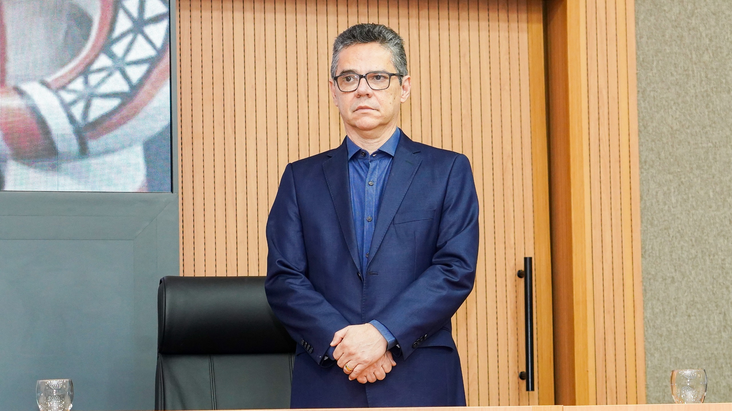 Marcelo de Deus - Ascom MPTO A imagem mostra um auditório com várias pessoas sentadas em cadeiras em fileiras e um grupo de autoridades sentadas atrás de uma mesa no palco. Na cena aparece também um homem em pé, posicionado atrás de um púlpito discursando.