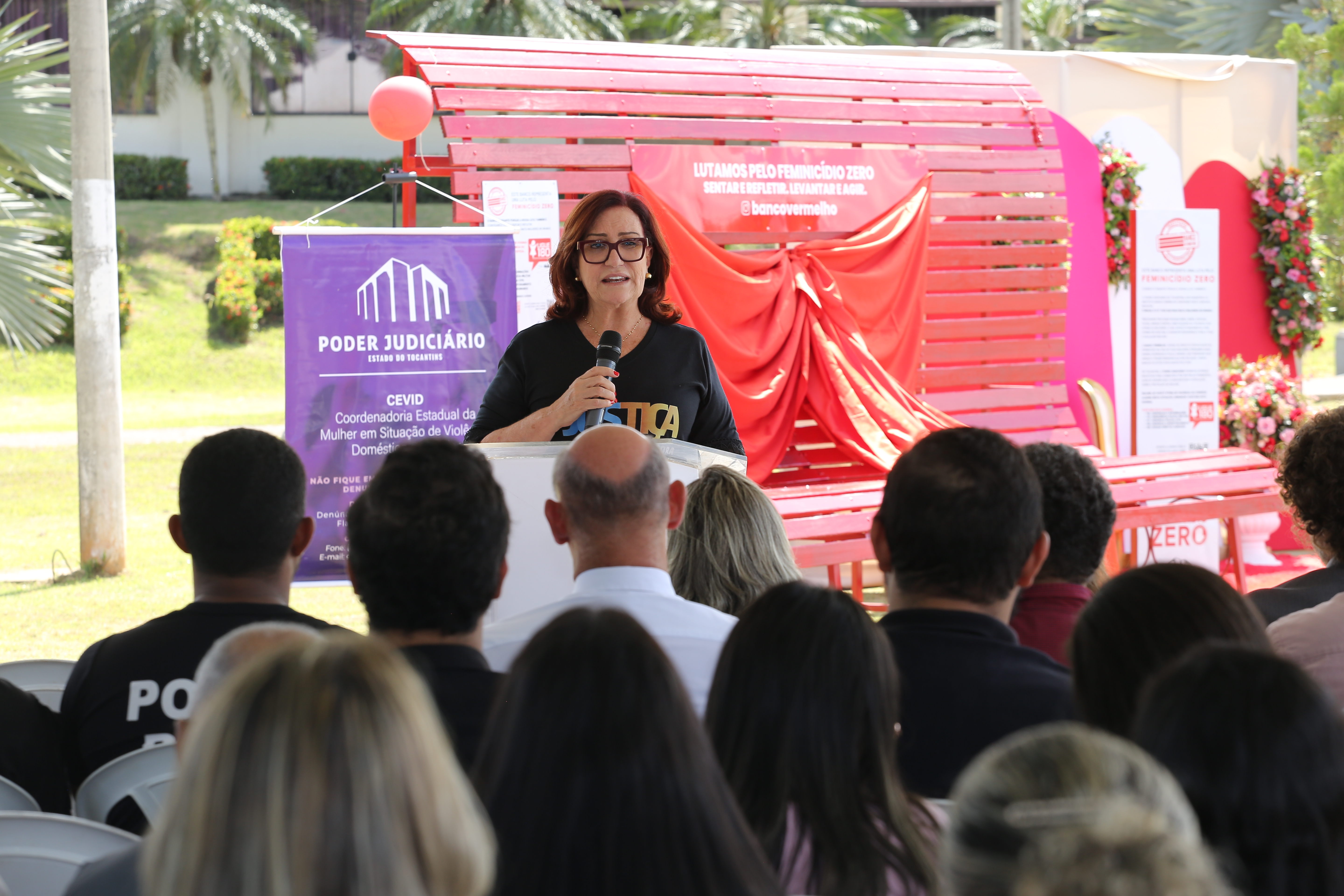 “O banco vermelho é um símbolo pelo fim da violência doméstica e do feminicídio, mas sozinhos não vamos a lugar algum, por isso precisamos dos parceiros e do engajamento de todos, seja nas palestras, nas escolas ou aqui mesmo no banco. Que ao chegarem aqui, observem a frase: ‘Sentar e refletir. Levantar e agir’. Ela é muito significativa, mas somente agindo é que iremos, de fato, fazer a diferença”, finalizou a presidente.