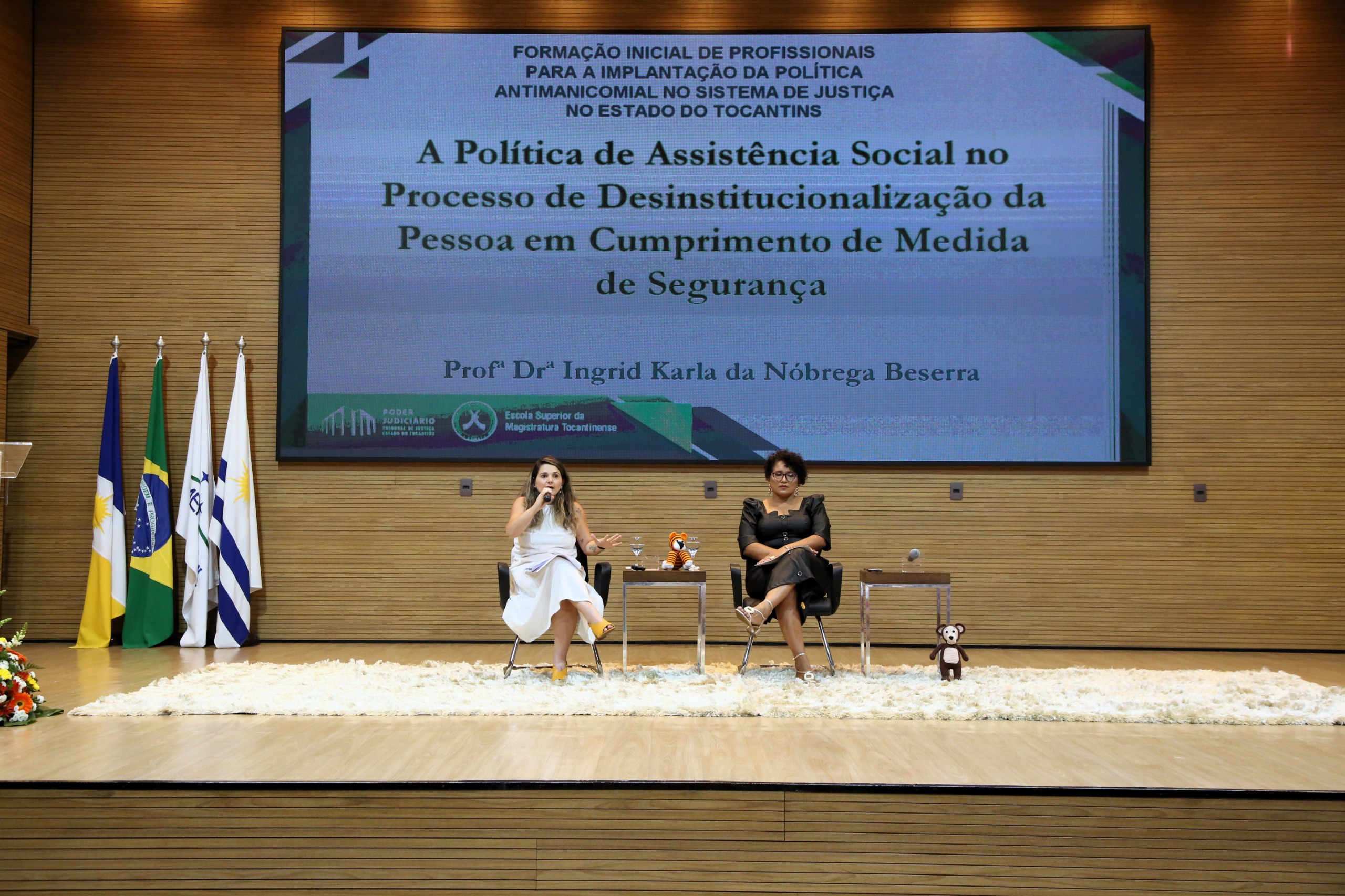 Para encerrar o dia, a professora doutora e coordenadora do Curso de Serviço Social da Universidade Federal do Tocantins (UFT), Ingrid Karla da Nóbrega Beserra, falou sobre a “A Política da Assistência Social no processo de desinstitucionalização da pessoa em cumprimento de medida de segurança”. Segundo ela, é importante reforçar o papel da intersetorialidade no momento de implementação da desinstitucionalização.