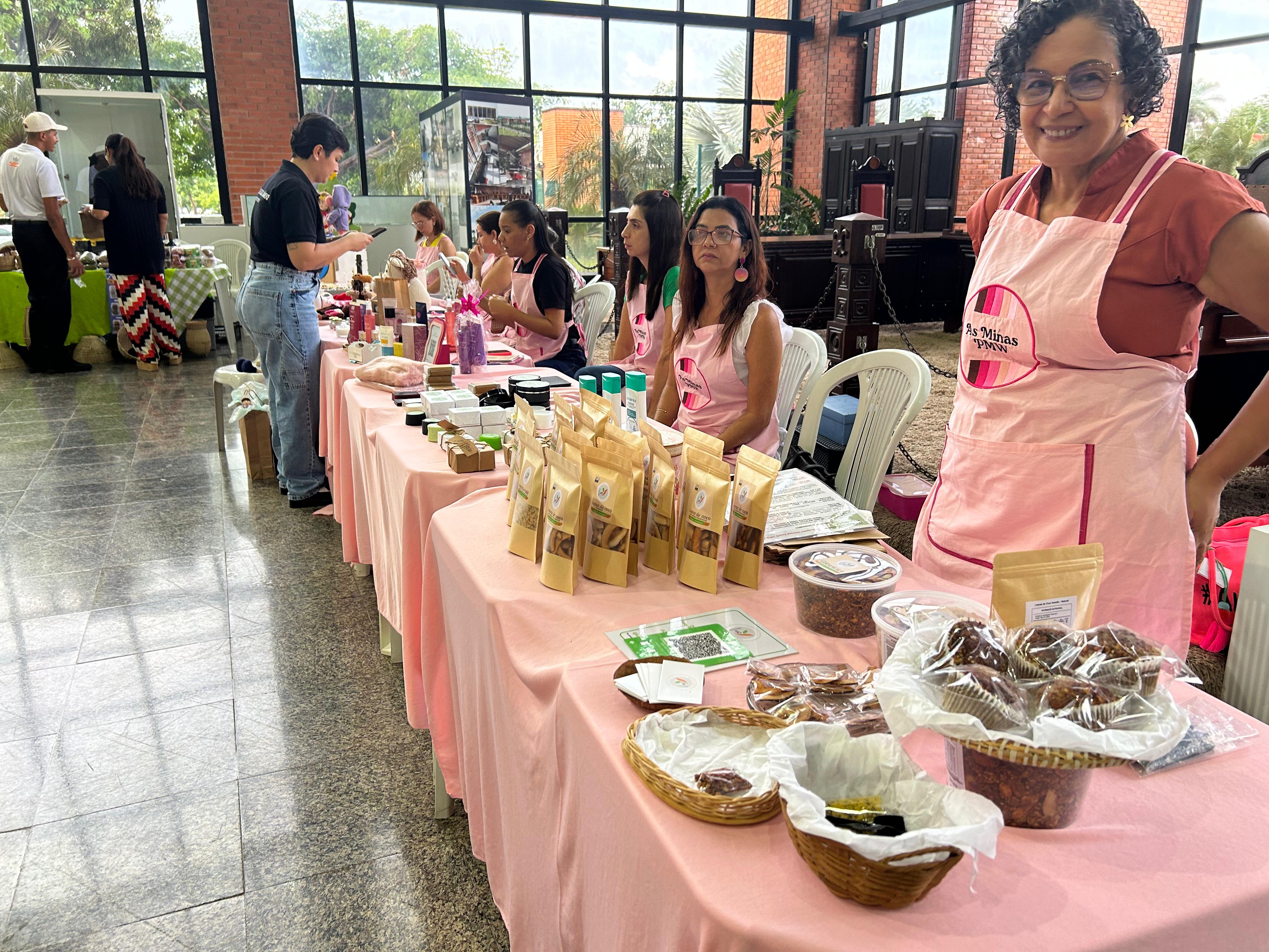 O hall de entrada do Tribunal de Justiça do Tocantins se tornou um oásis repleto de peças de capim dourado, roupas costuradas à mão, crochês, semijoias e uma variedade de alimentos naturais e nutritivos, trazidos pelas expositoras da Feira das Manas, do Grupo das Minas de Palmas e da Associação de Agricultores de Palmas (Agrop).