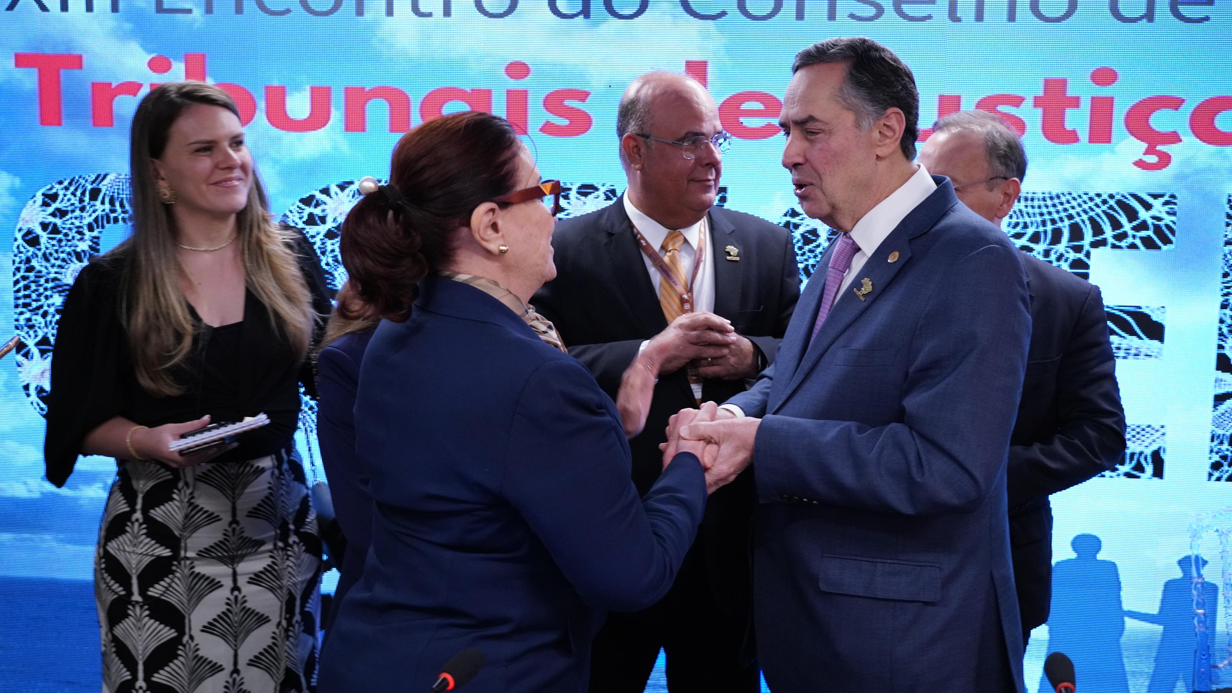 Na ocasião, Barroso destacou a importância da troca de experiências para promover mais avanços no Judiciário brasileiro. “Essa é uma oportunidade de trocarmos ideias. Eu consigo expor um pouco a minha visão do Judiciário e o que temos conseguido fazer e, sobretudo, ouvir as pessoas. Gosto de dizer que a melhor maneira de convencer os outros é com os ouvidos, ouvindo as pessoas e, portanto, eu ouço as sugestões dos presidentes, as ideias e essa é a razão de ser de um evento como esse, trocar experiências, ouvir ideias e renovar laços afetivos que a vida também é feita da afetividade”, declarou o ministro presidente do STF.