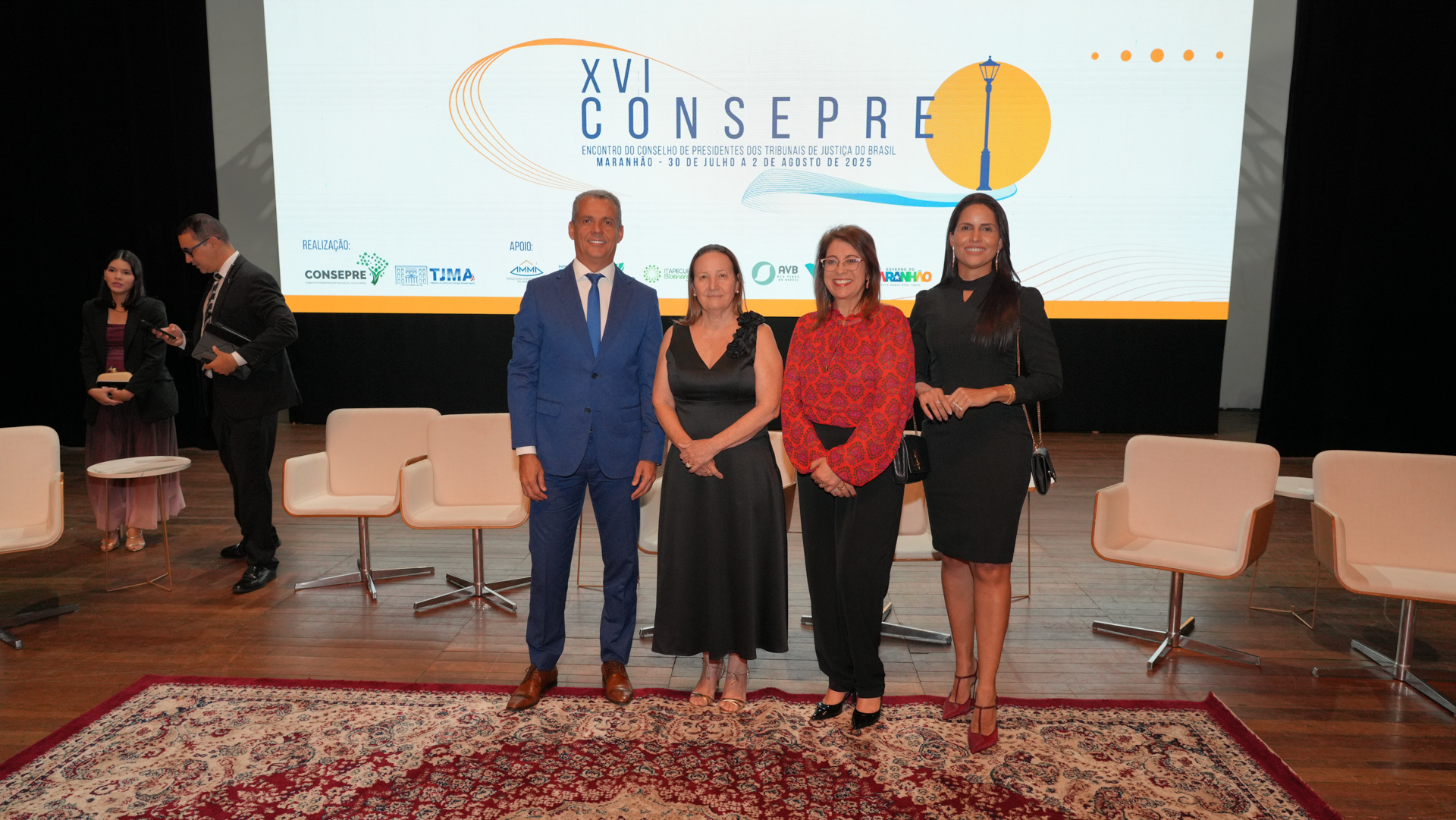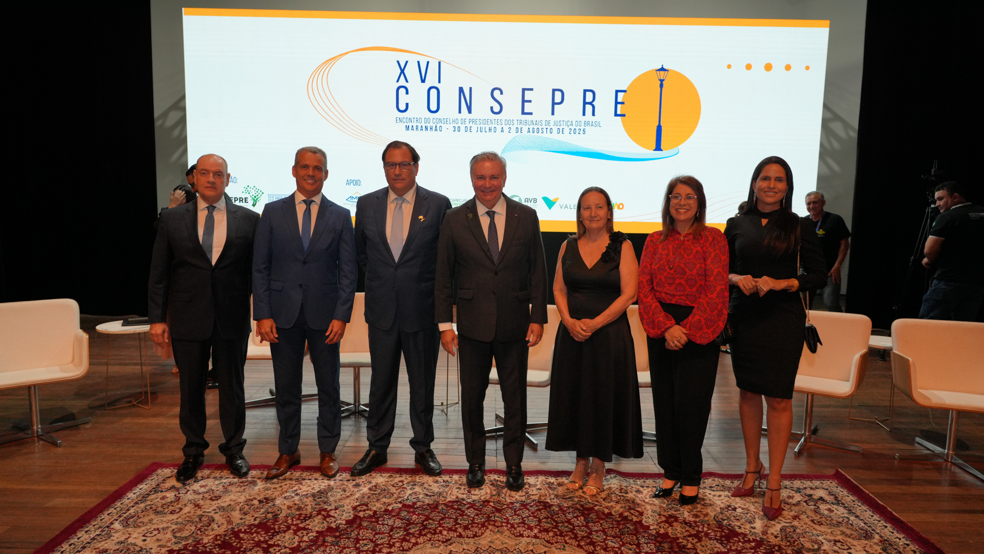O Conselho de Presidentes agraciou autoridades com a entrega da Medalha de Honra Consepre. Foram homenageados a presidente da Assembleia Legislativa do Maranhão, Iracema Vale; o ministro Flávio Dino; o ex-presidente José Sarney; os ministros do STJ, Reynaldo Fonseca e Joel Ilan Paciornik; os conselheiros do CNJ Alexandre de Freitas e Guilherme Feliciano; as conselheiras Daiane Nogueira, Renata Gil e Daniela Madeira; e os desembargadores Paulo Velten (TJMA) e Sérgio Martins (TJMS).