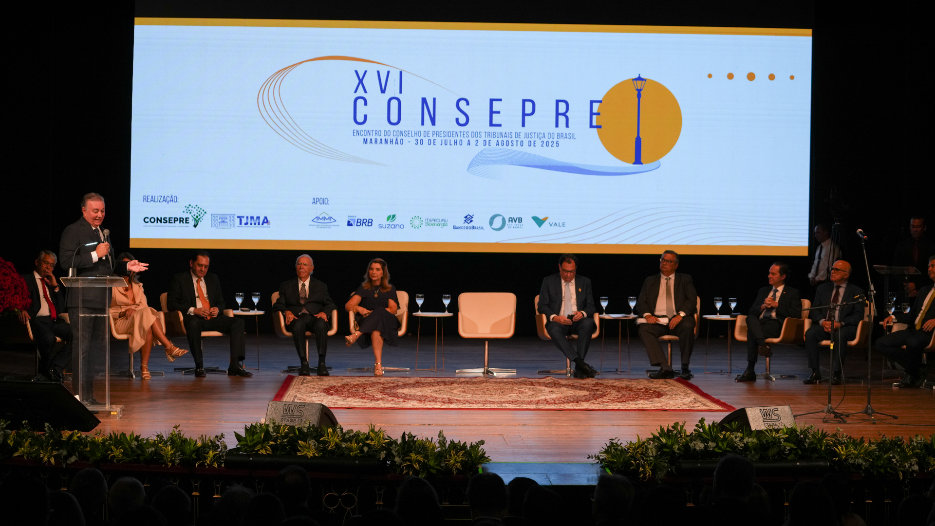 Palco de momentos marcantes da história do Maranhão, o Teatro Arthur Azevedo, em São Luis, recebeu na noite desta quarta-feira (30/7) a solenidade de abertura do XVI Encontro do Conselho de Presidentes dos Tribunais de Justiça do Brasil (Consepre). Evento reúne magistrados e magistradas de todo o Brasil para discutir os desafios e o futuro do Judiciário estadual até o próximo dia 2/8. A presidente do Tribunal de Justiça do Tocantins, desembargadora Maysa Vendramini Rosal, participa do encontro.