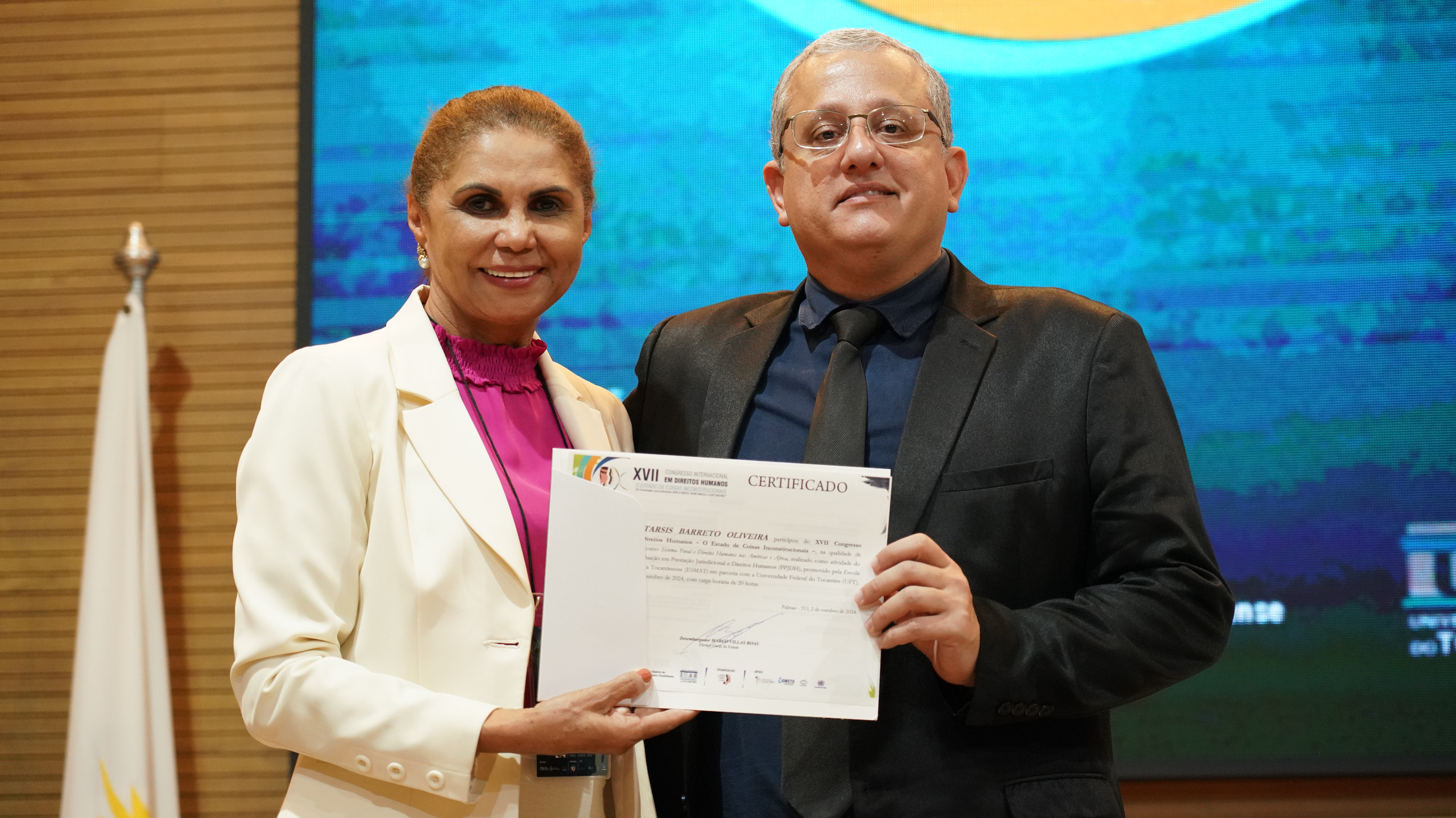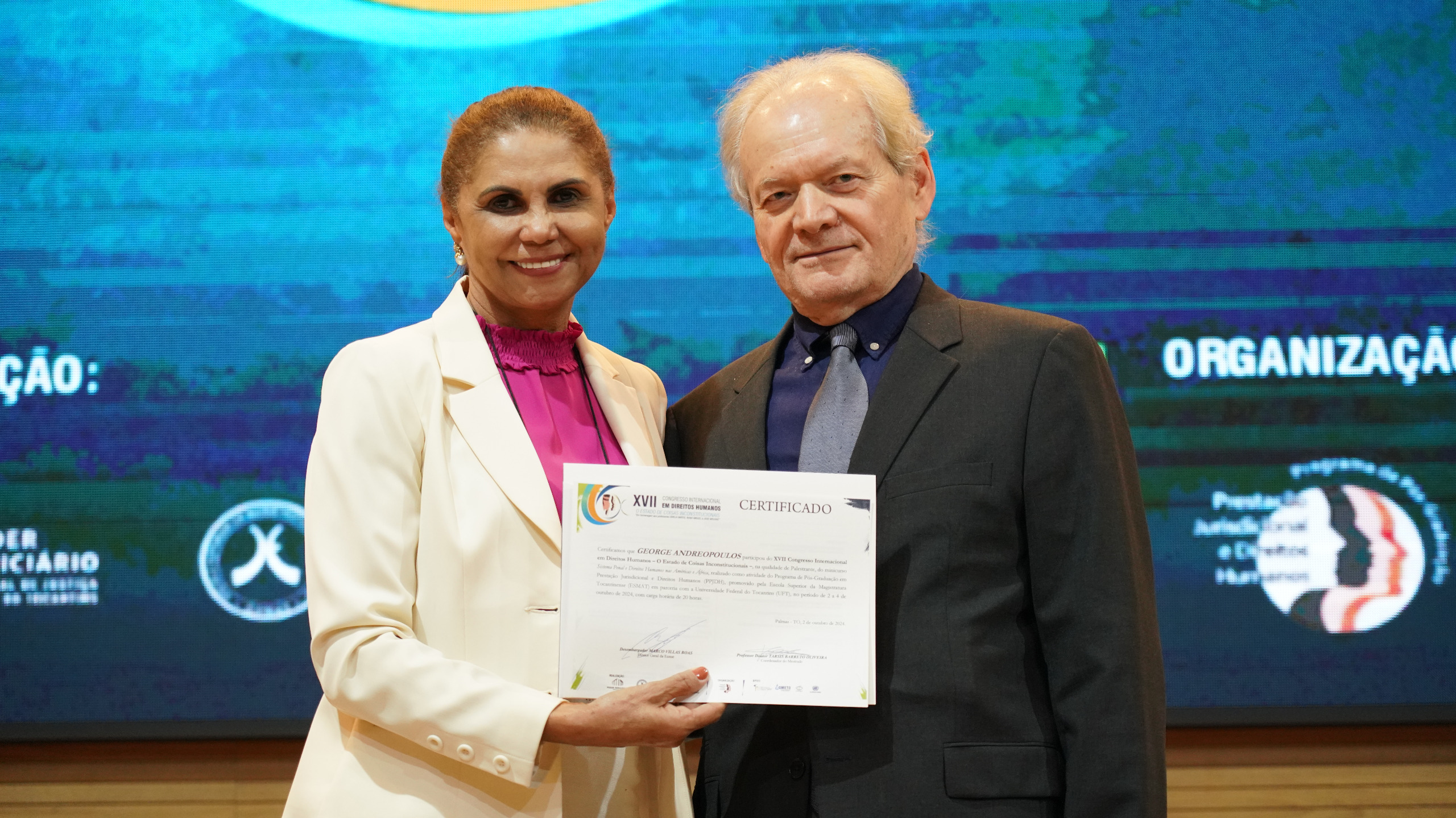 Com o auditório do Tribunal de Justiça do Estado do Tocantins (TJTO) lotado, os palestrantes internacionais George Andreopoulos (EUA) e Mohamed Jaouhar (Marrocos) compartilharam suas experiências e visões sobre os desafios relacionados ao tema “Sistema penal e direitos humanos nas Américas e África”. O minicurso foi coordenado pelos professores doutores Tarsis Oliveira e Paulo Sérgio Soares.