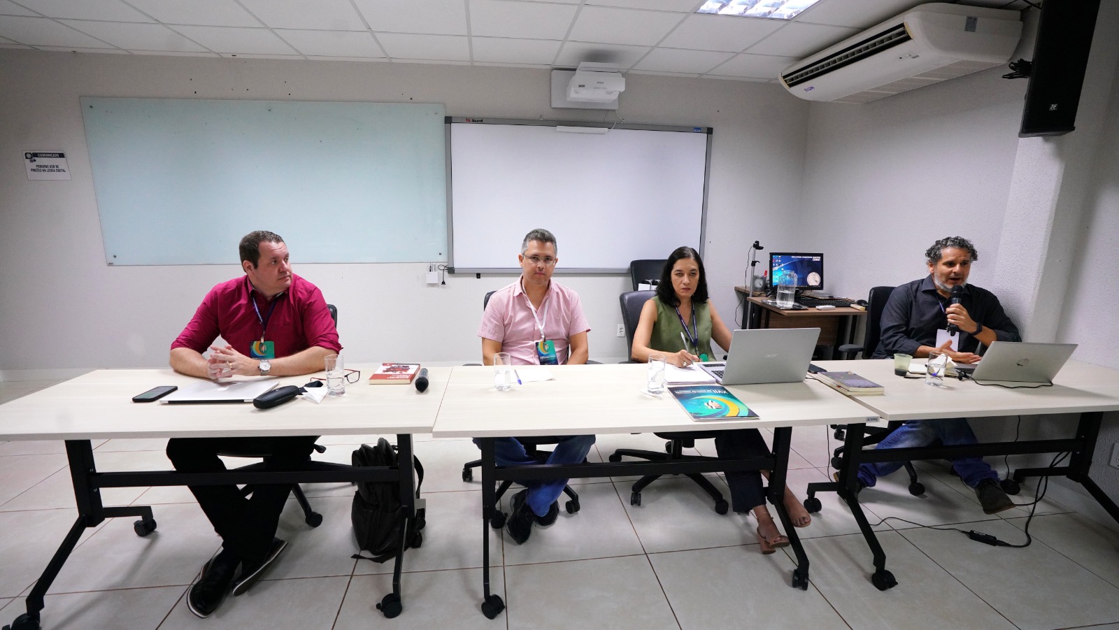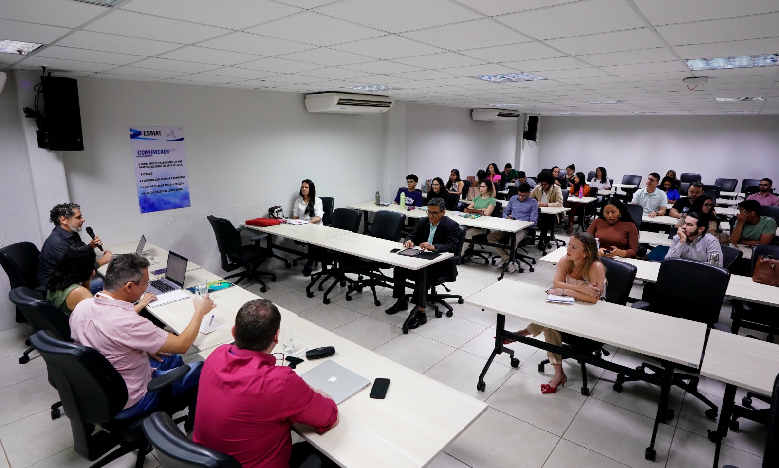 Simultaneamente, as salas de aula da Esmat contaram com a presença de Herivelto Pereira Souza, professor do Departamento de Filosofia da Universidade de Brasília (UnB); Leilyane Masson, professora de Psicopatologia na Universidade Federal de Goiás (UFG); e Tiago Ravanello, professor de Psicologia na Universidade Federal de Mato Grosso do Sul (UFMS). Eles discutiram as intersecções entre “Psicanálise, Autoritarismo e Direitos Humanos”, em um intercâmbio coordenado pelo professor Carlos Mendes Rosa, do curso de Psicologia da Universidade Federal do Tocantins (UFT).